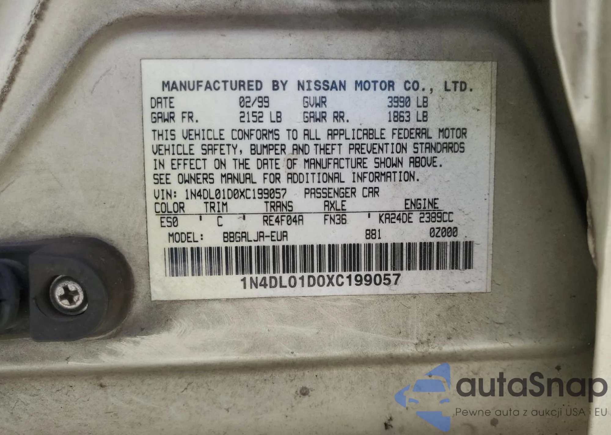 VIN: 1N4DL01D0XC199057