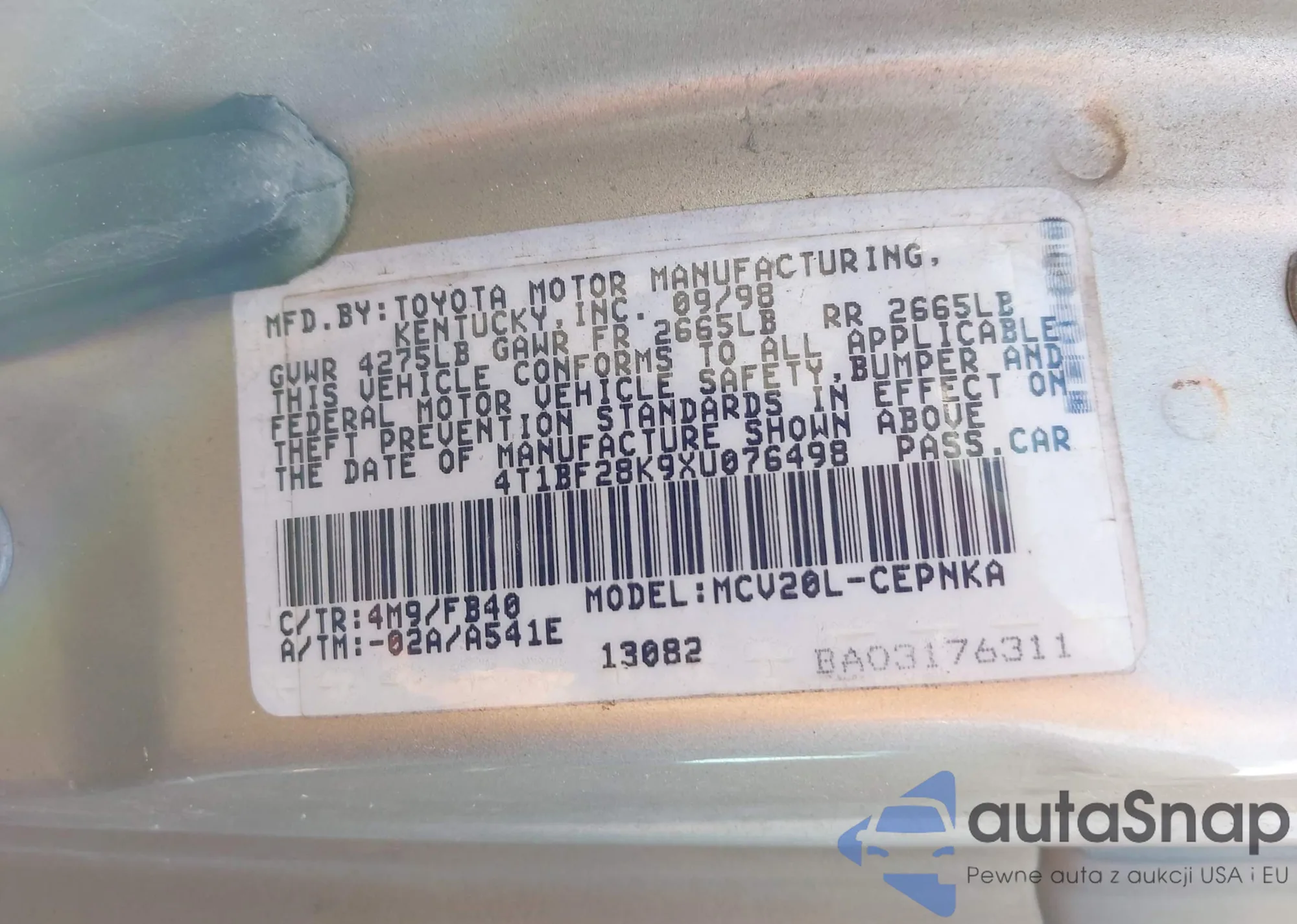 VIN: 4T1BF28K9XU076498