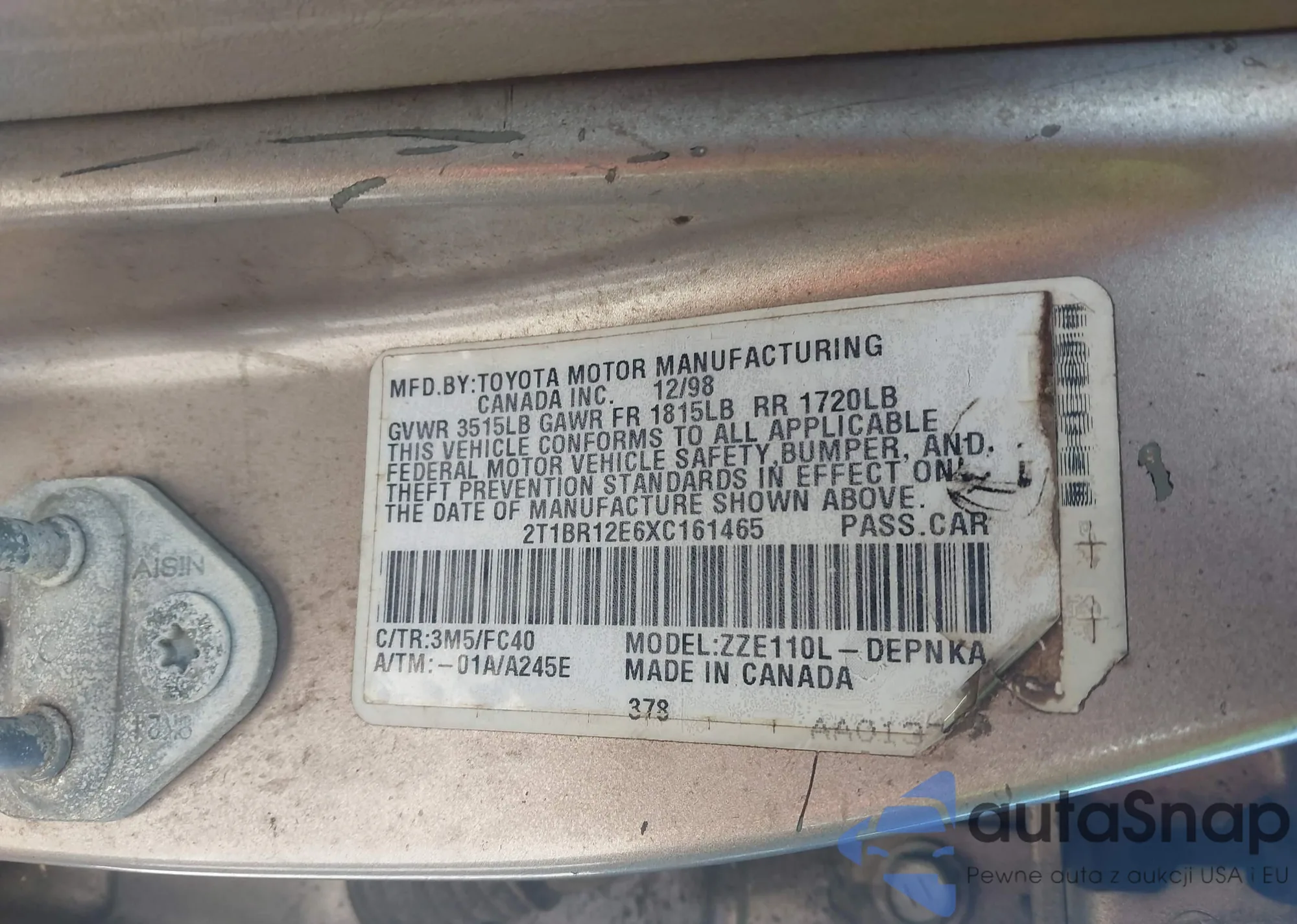 Toyota Corolla 1999 – Historia pojazdu (sprzedany na IAAI)