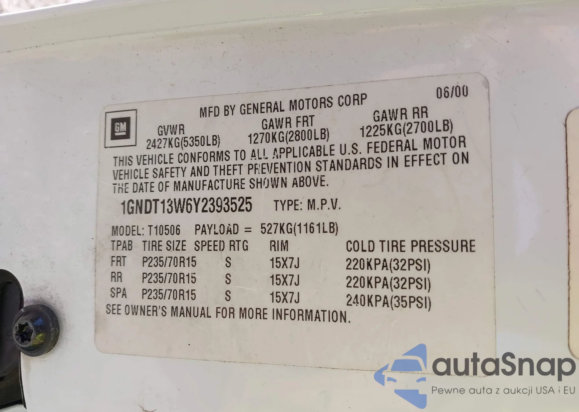 VIN: 1GNDT13W6Y2393525