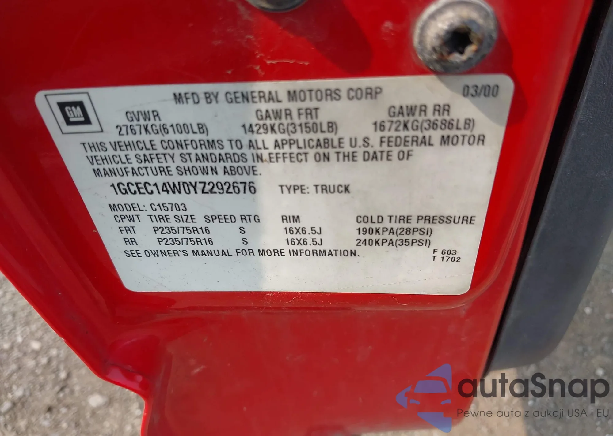 VIN: 1GCEC14W0YZ292676