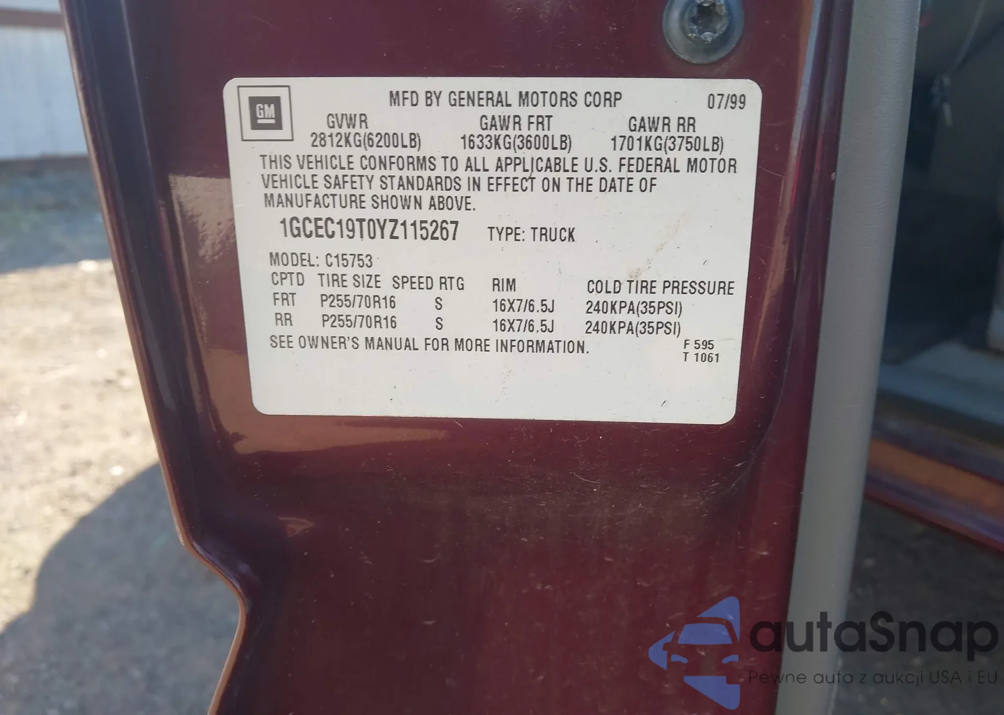 VIN: 1GCEC19T0YZ115267