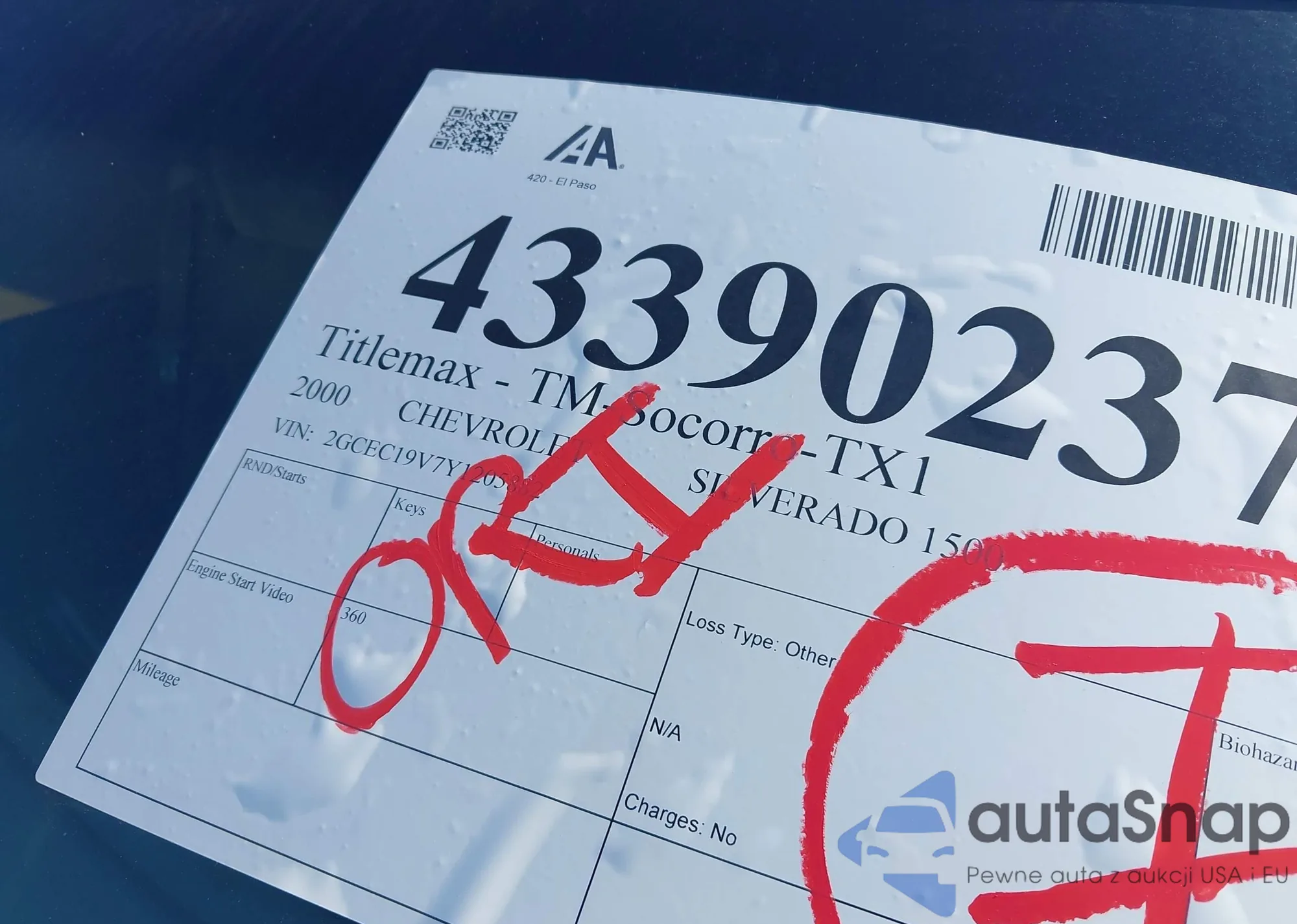 Chevrolet Silverado 2000 – Historia pojazdu (sprzedany na IAAI)