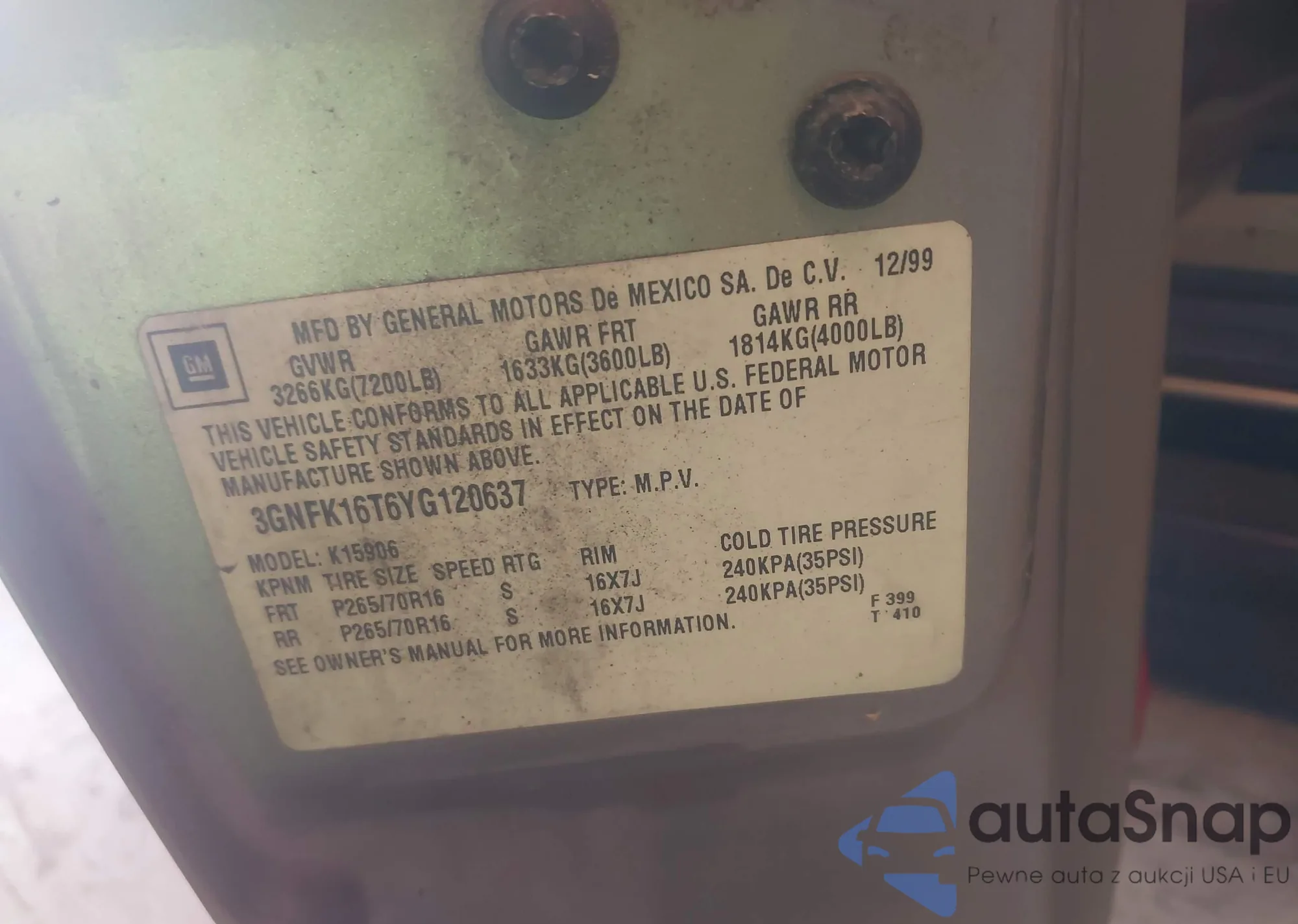 VIN: 3GNFK16T6YG120637