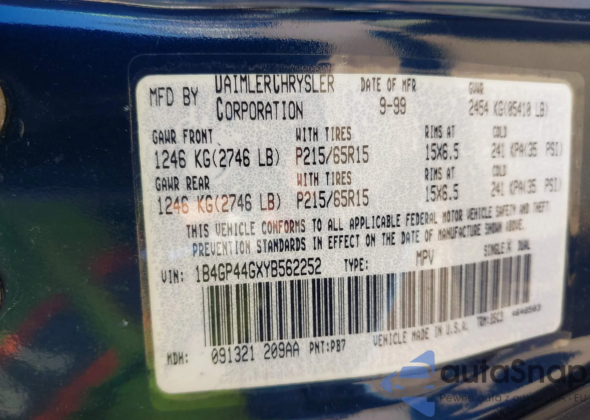 • VIN: 1B4GP44GXYB562252