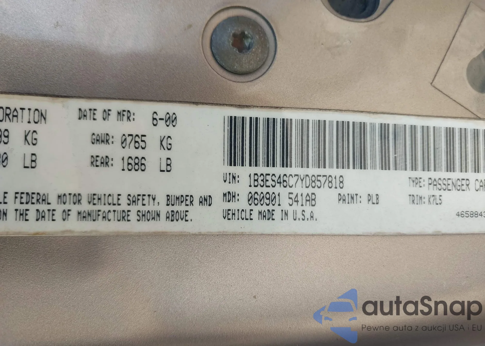 VIN: 1B3ES46C7YD857818