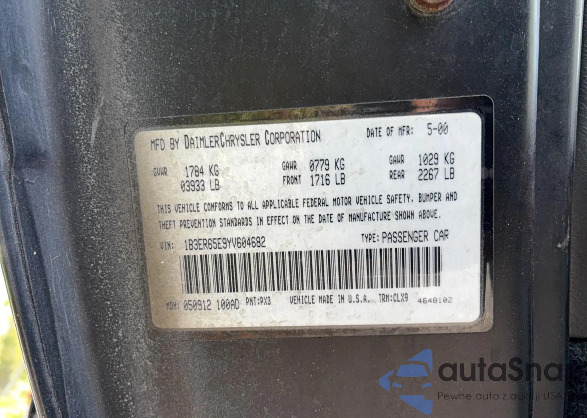 VIN: 1B3ER65E9YV604682