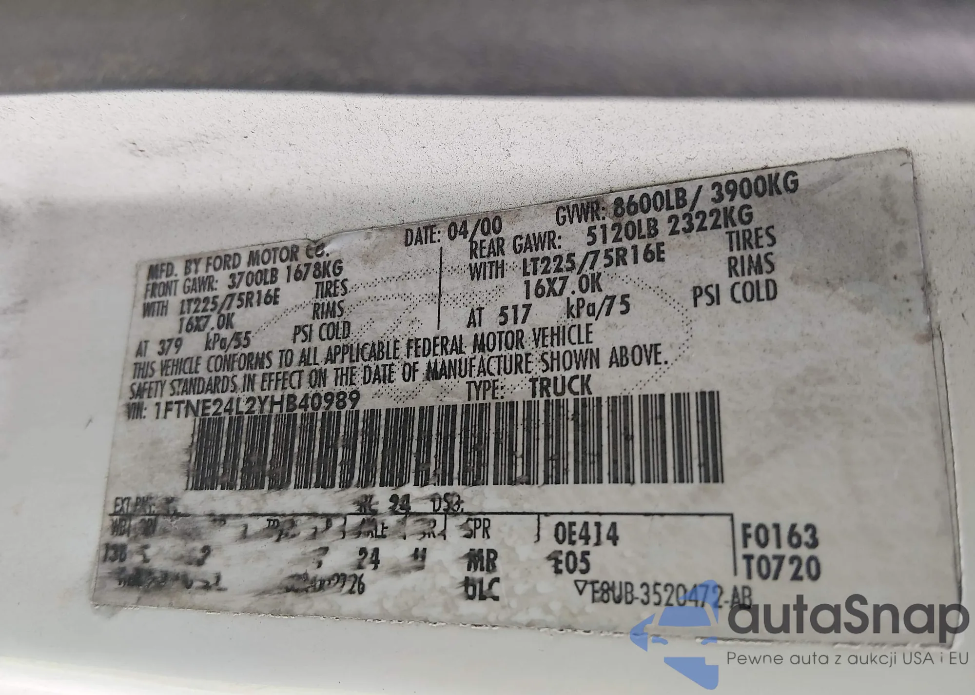 Ford Econoline 2000 – Historia pojazdu (sprzedany na IAAI)