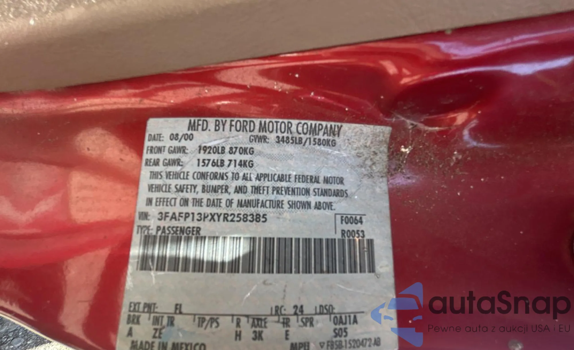 VIN: 3FAFP13PXYR258385