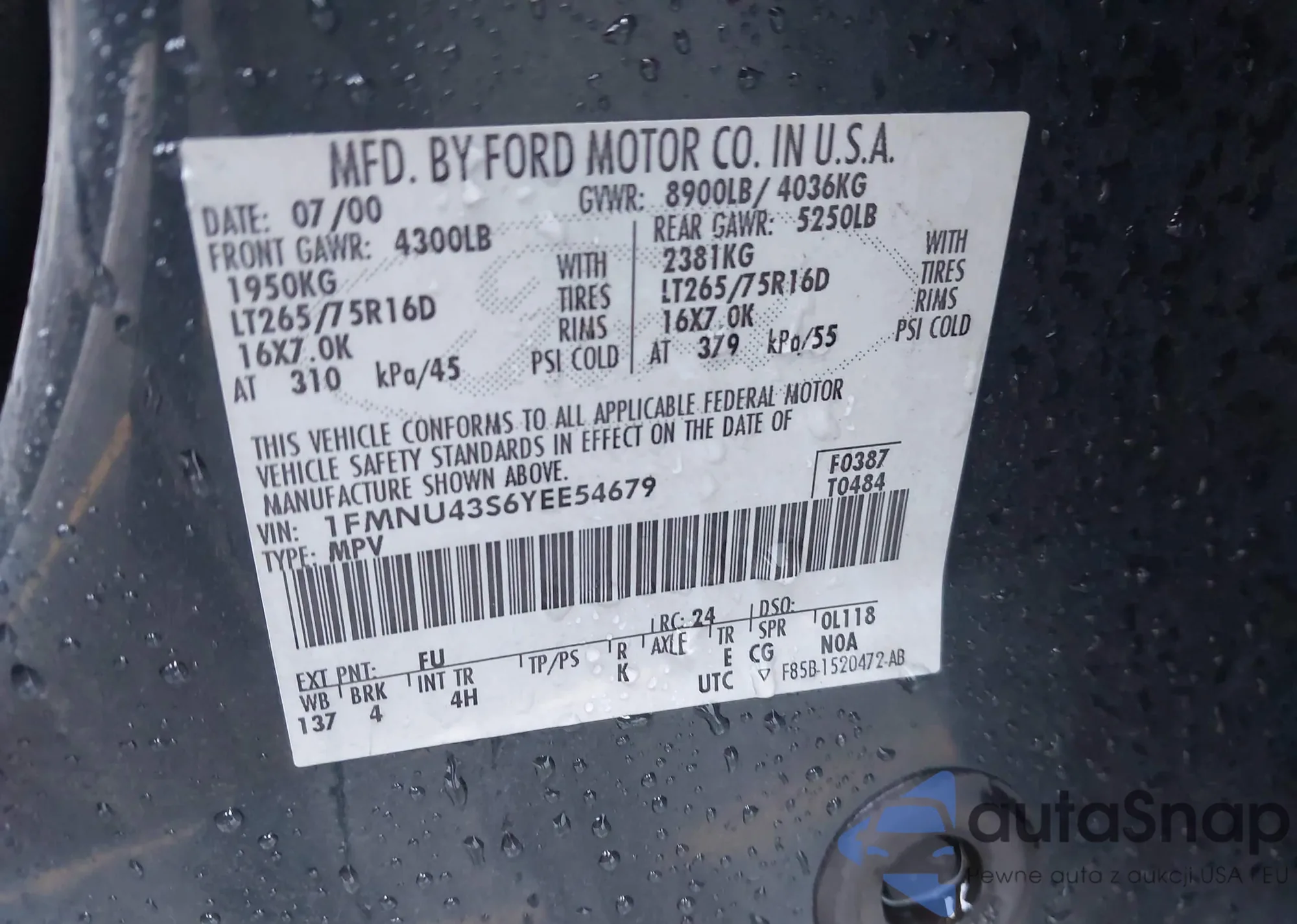 VIN: 1FMNU43S6YEE54679