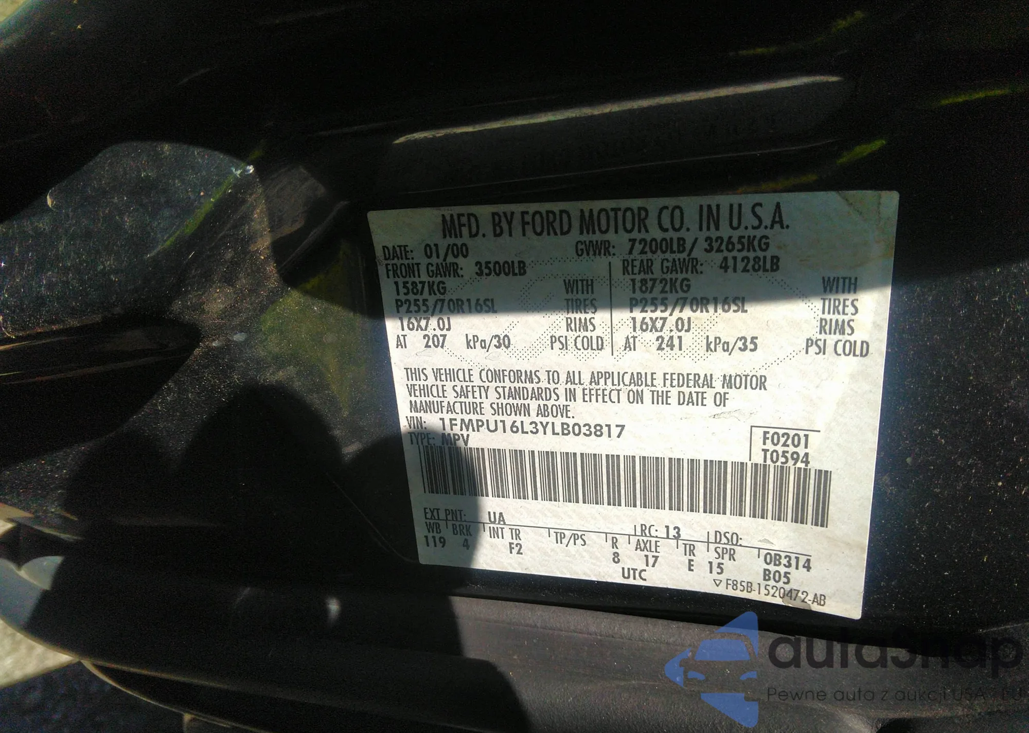 VIN: 1FMPU16L3YLB03817