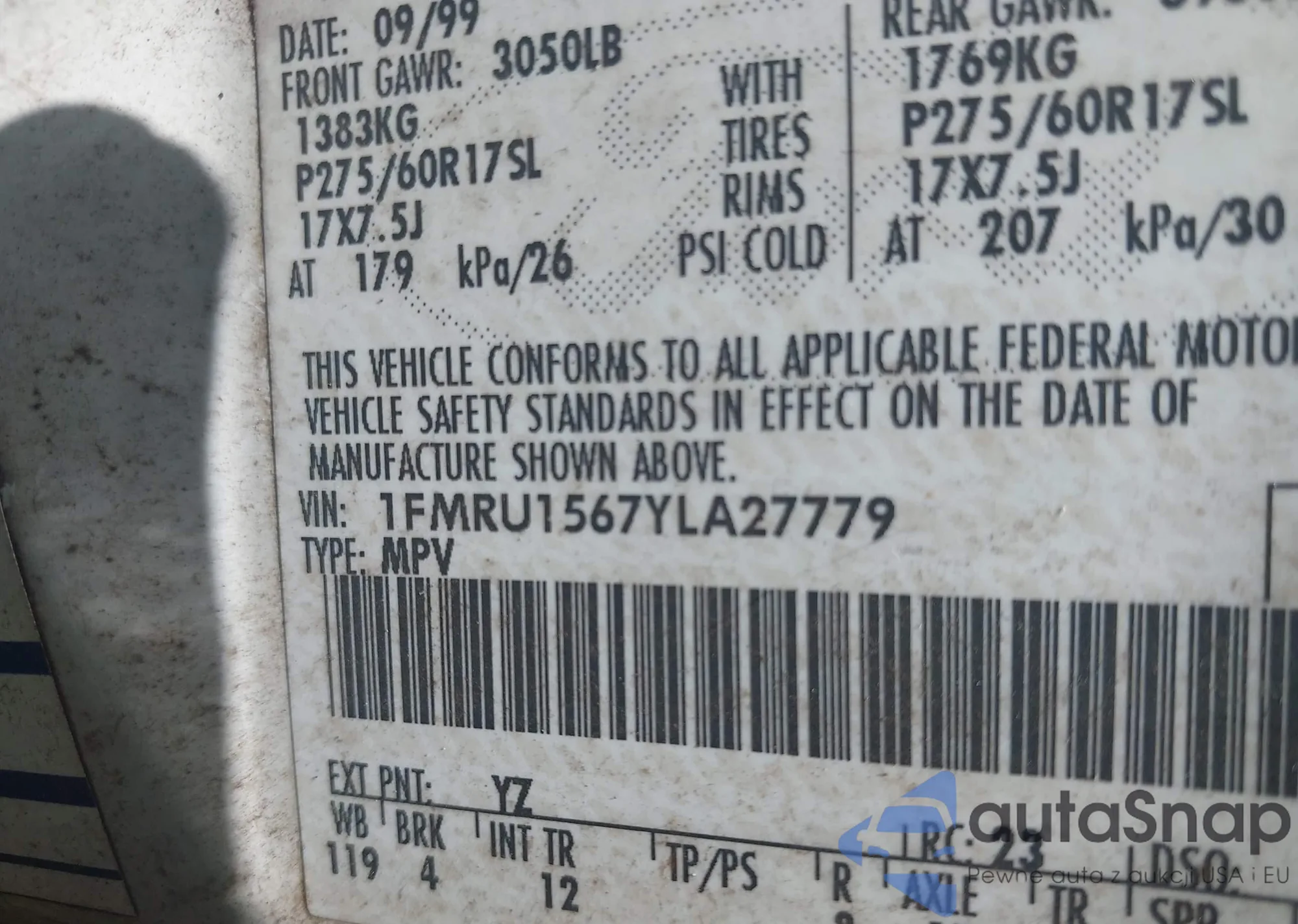 VIN: 1FMRU1567YLA27779