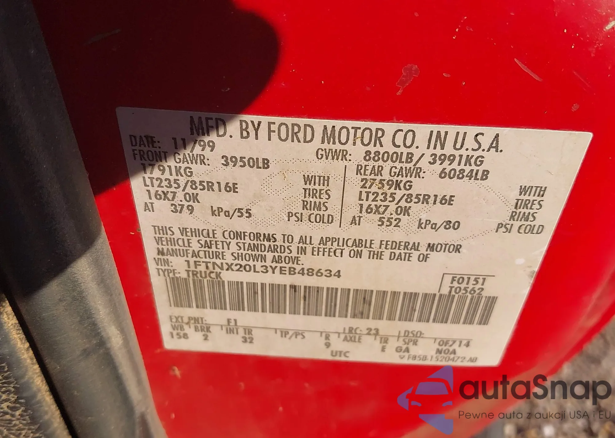 VIN: 1FTNX20L3YEB48634