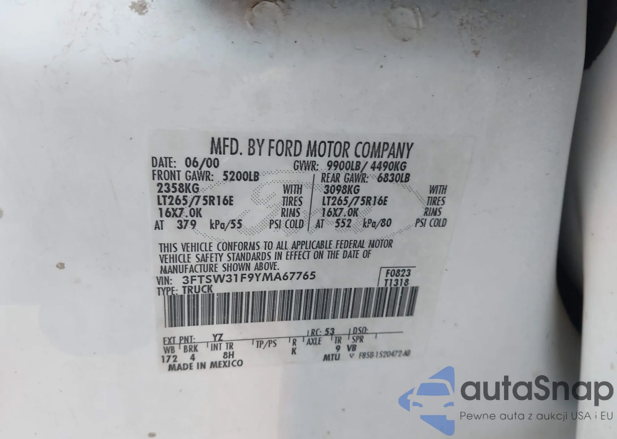 Samochód Ford F350 2000 (VIN 3FTSW31F9YMA67765) był już licytowany 1 razy i/lub sprzedaje go niezweryfikowany sprzedawca. Zalecamy raport Carfax i potwierdzenie możliwości rejestracji pojazdu przed zakupem.