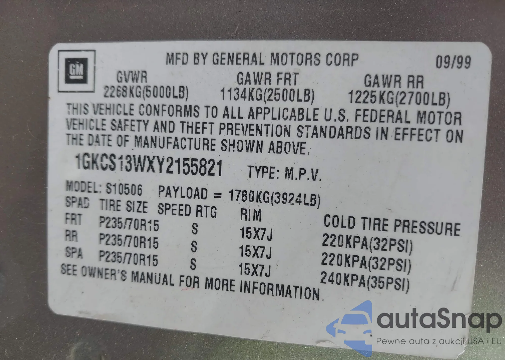 • VIN: 1GKCS13WXY2155821