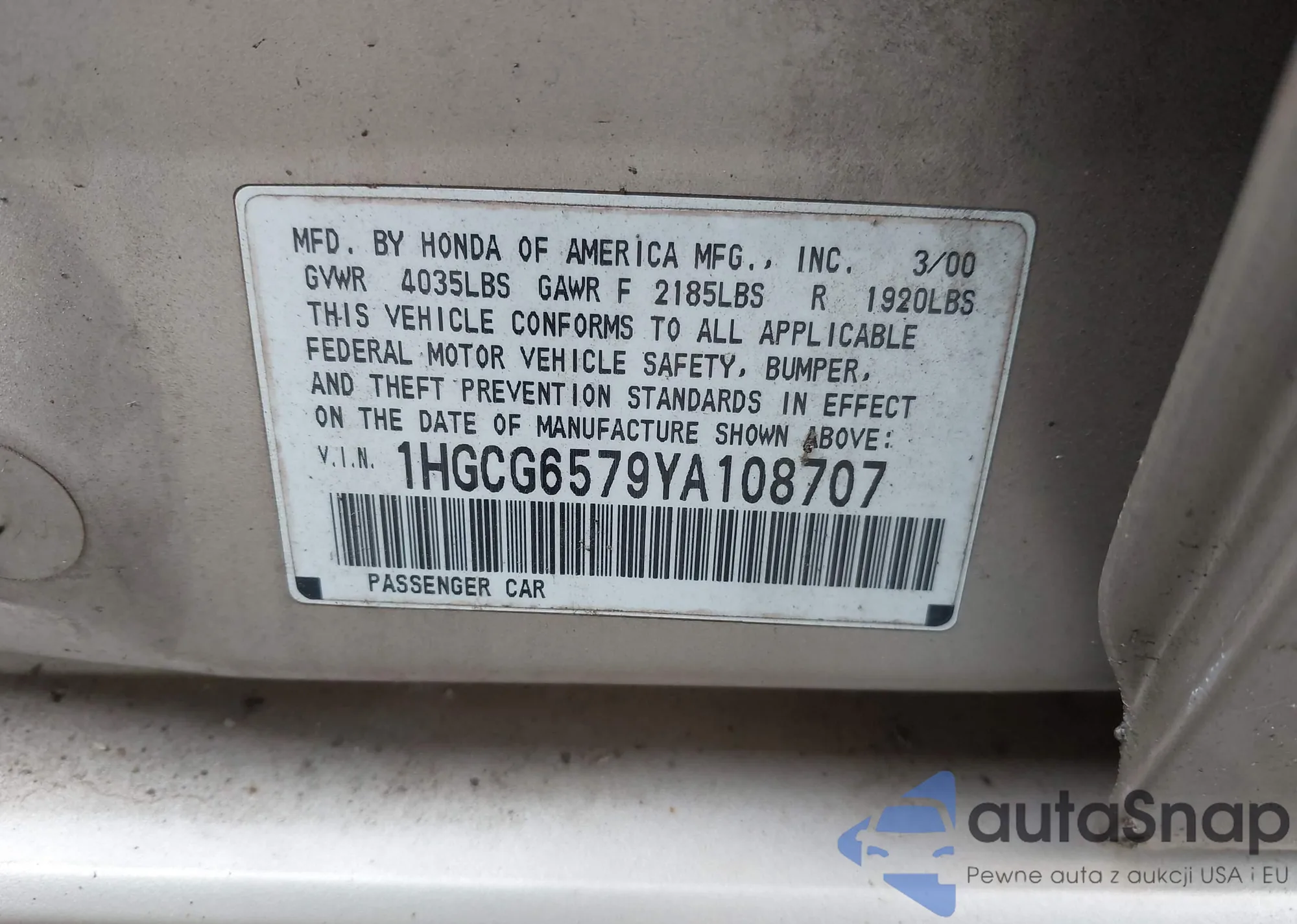 VIN: 1HGCG6579YA108707
