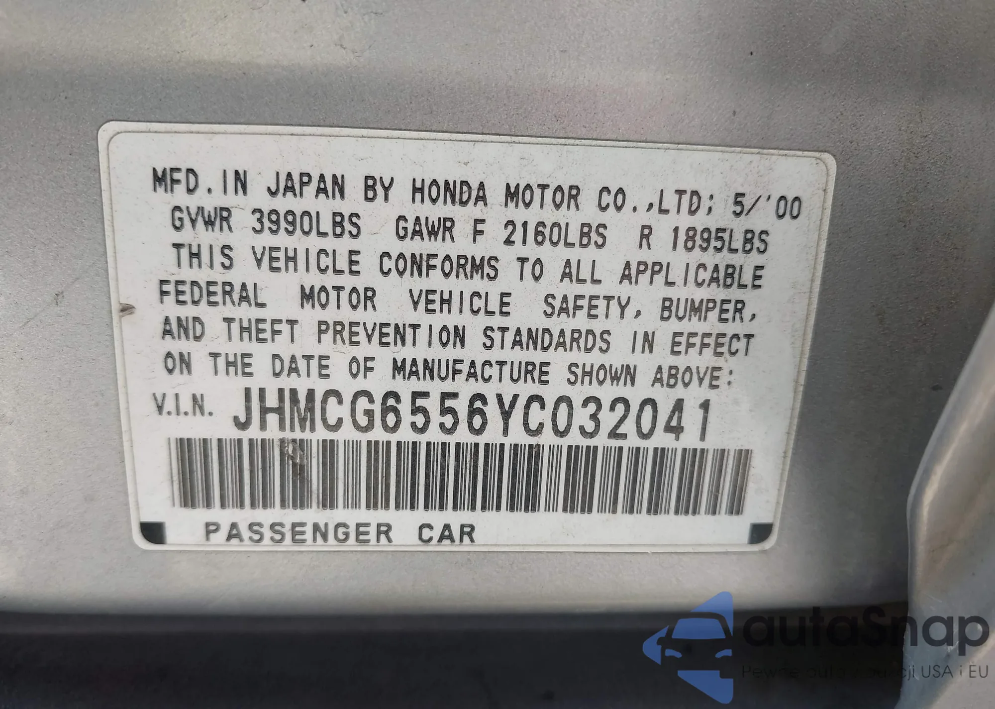 VIN: JHMCG6556YC032041