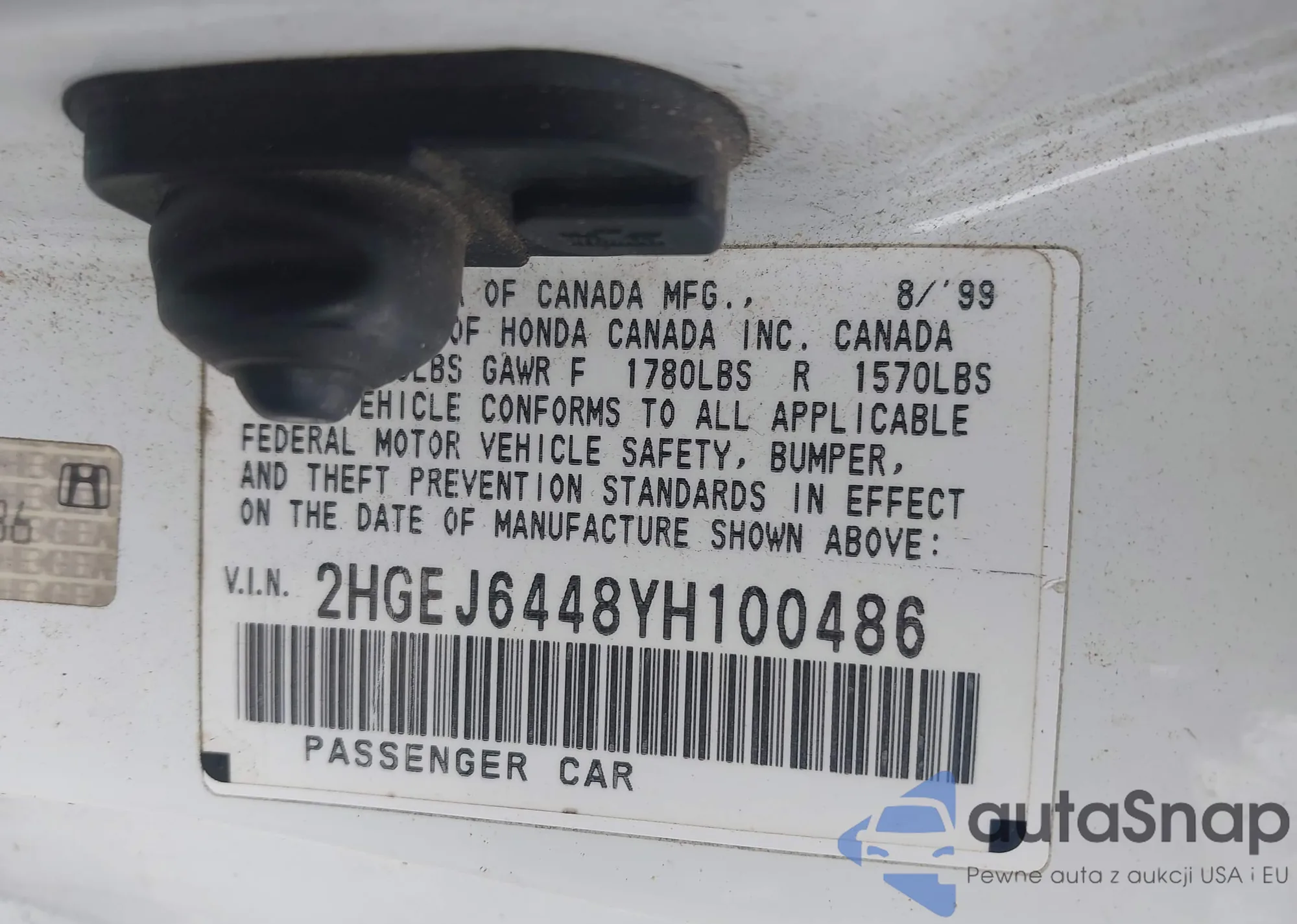 Samochód Honda Civic 2000 (VIN 2HGEJ6448YH100486) nie był wcześniej licytowany. Dokumenty są czyste, przebieg odpowiada lub jest niższy niż średnia rynku. Sprzedaje go firma ubezpieczeniowa – polecamy zakup. Dostawa do portu zajmie ok. 6–8 tygodni.