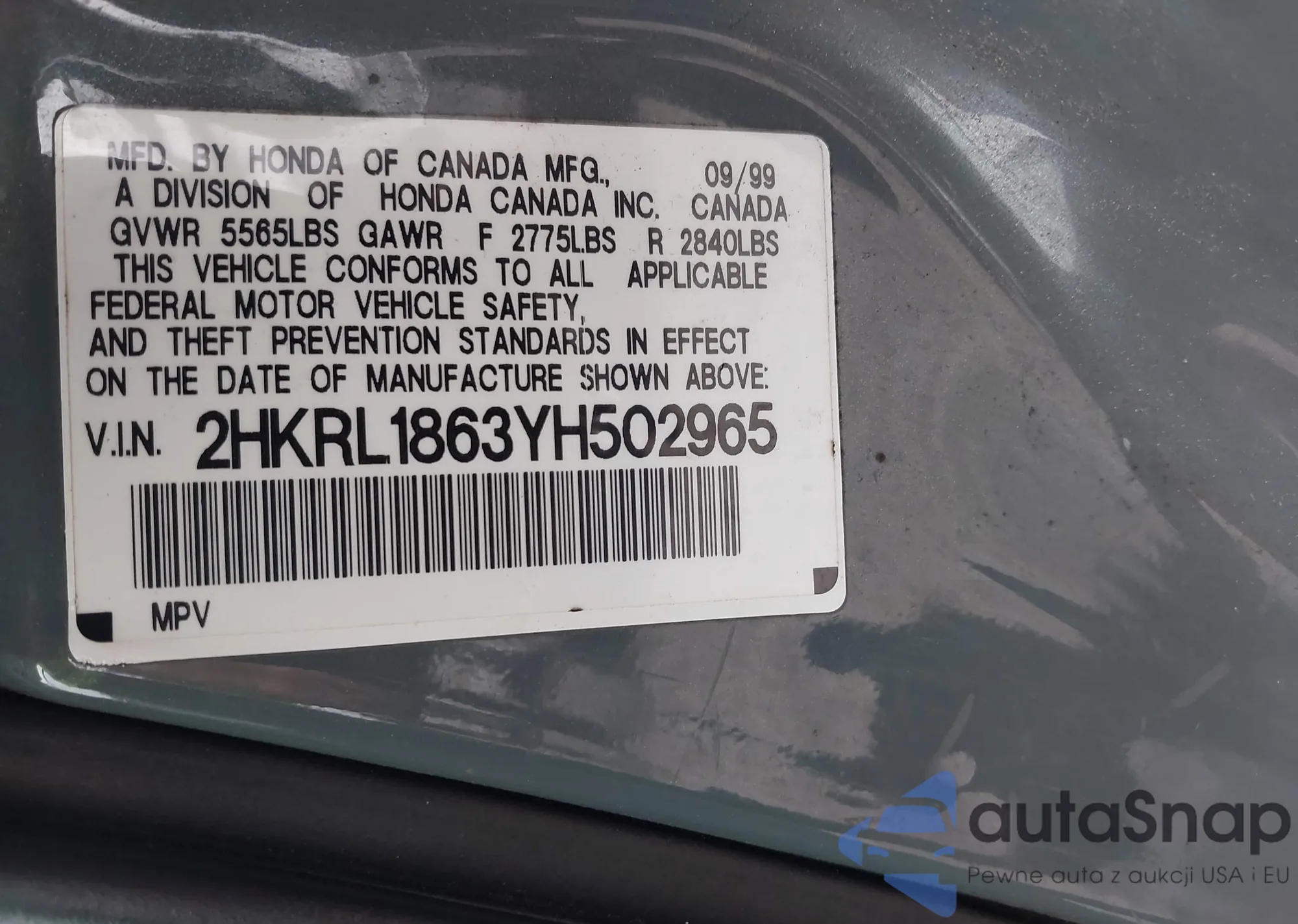 VIN: 2HKRL1863YH502965