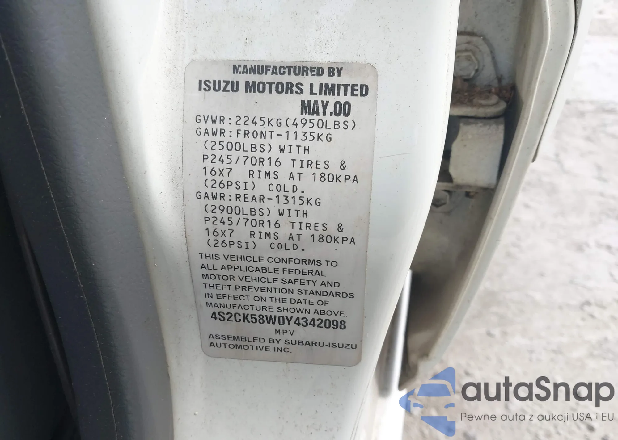 Isuzu Rodeo 2000 – Historia pojazdu (sprzedany na IAAI)