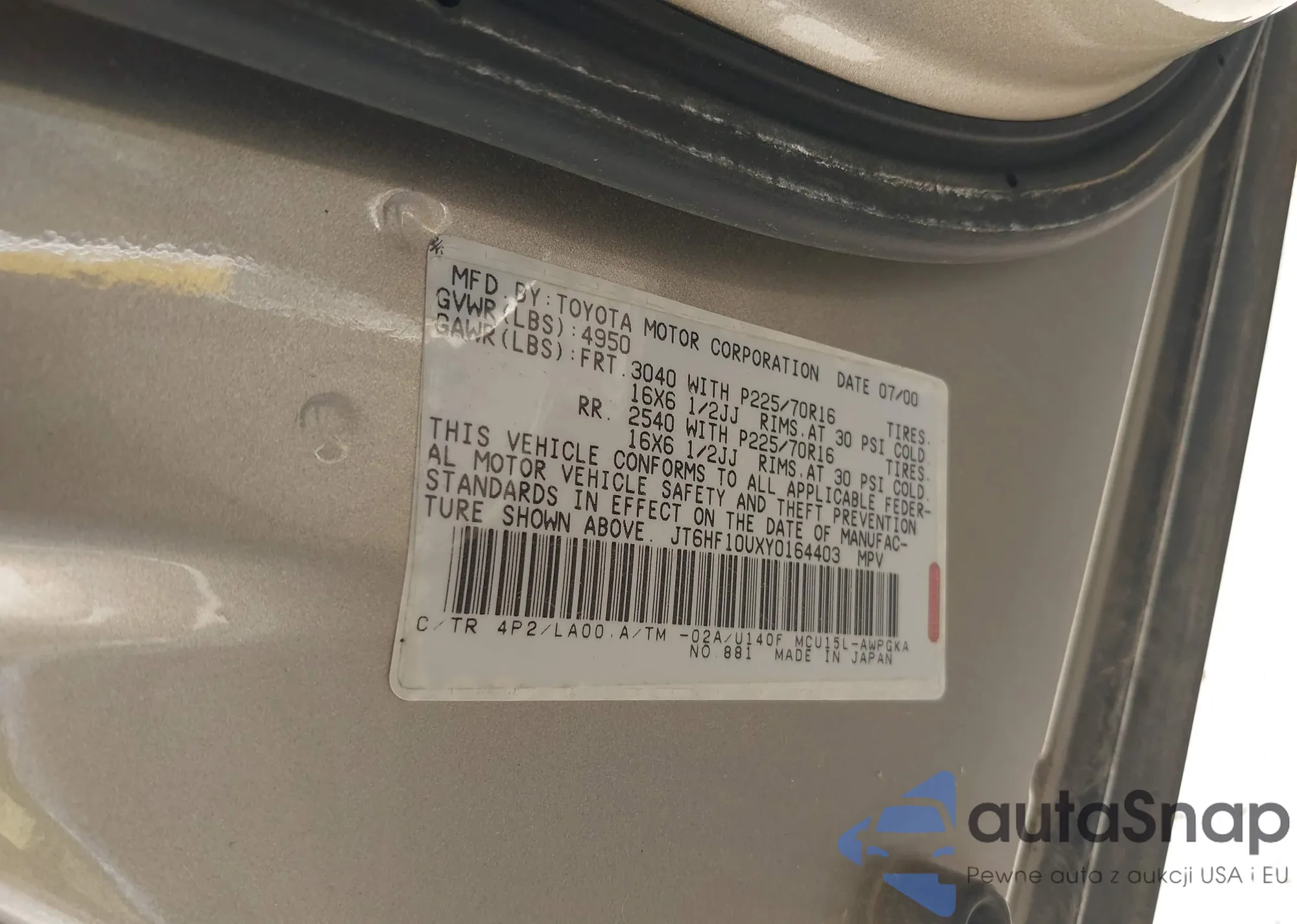 VIN: JT6HF10UXY0164403