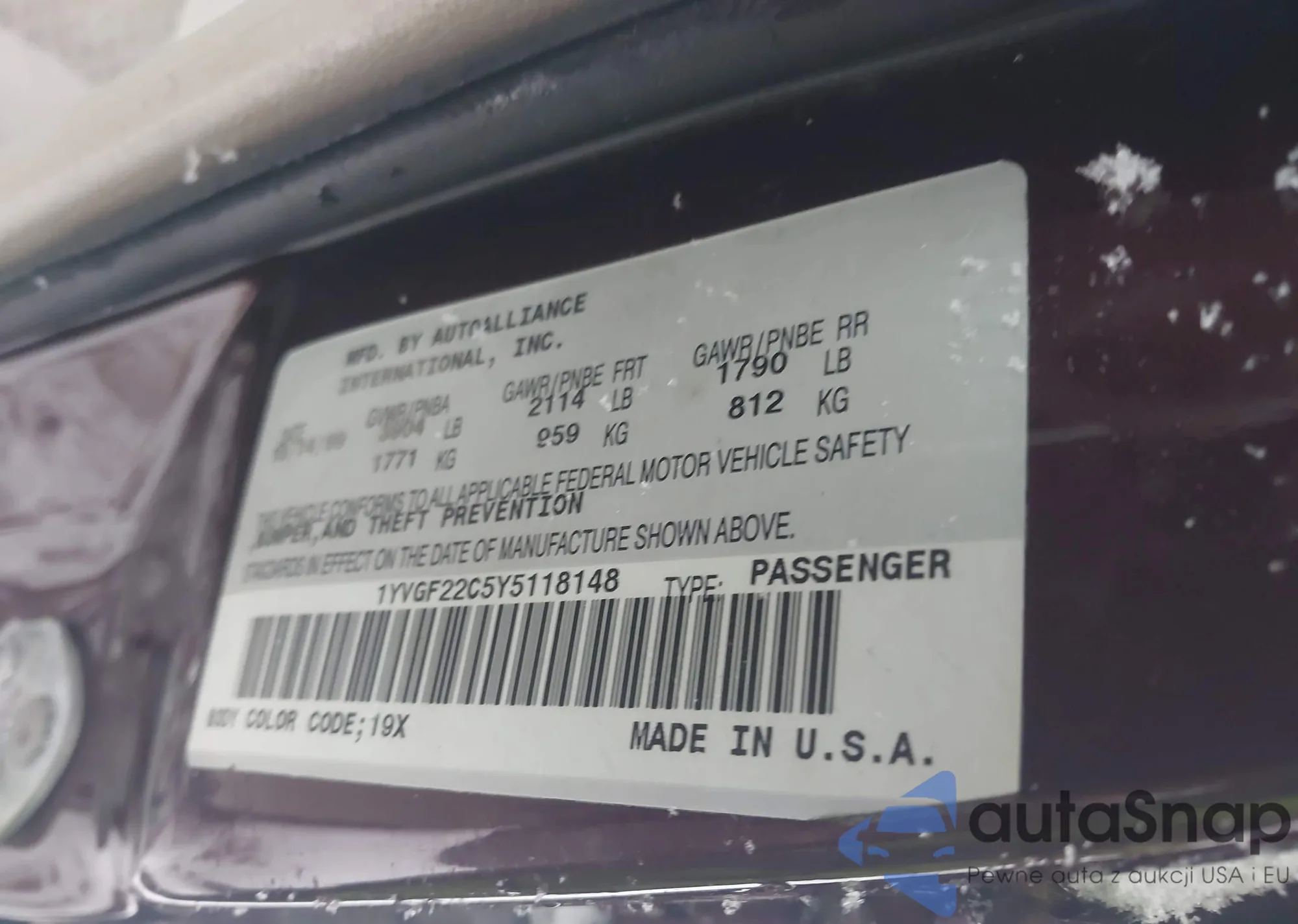 VIN: 1YVGF22C5Y5118148