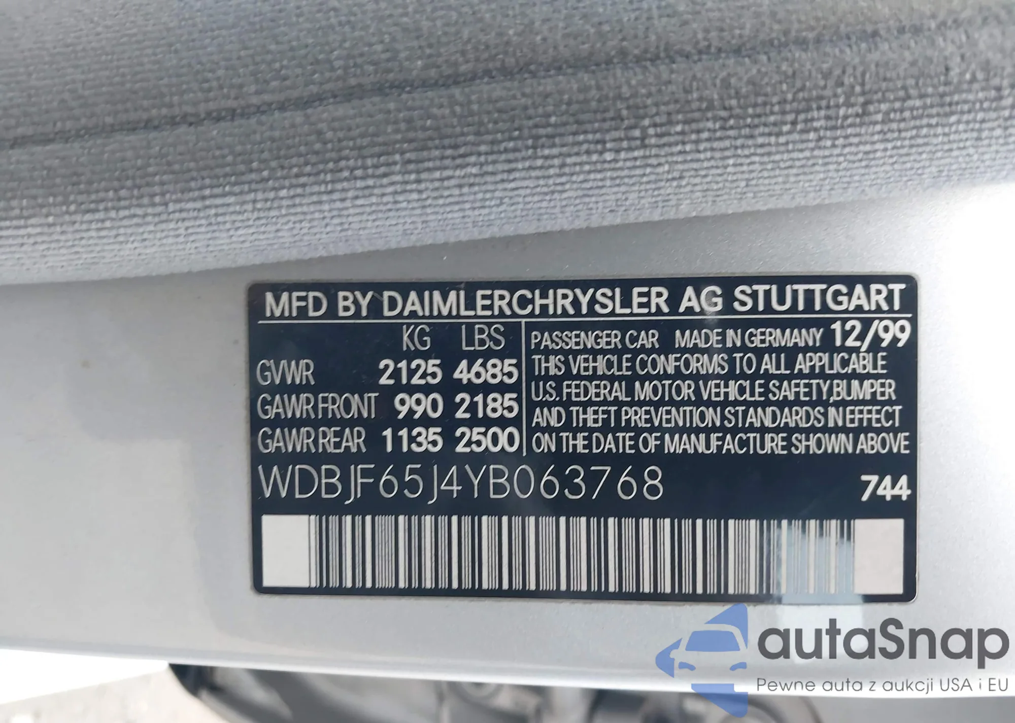 • VIN: WDBJF65J4YB063768
