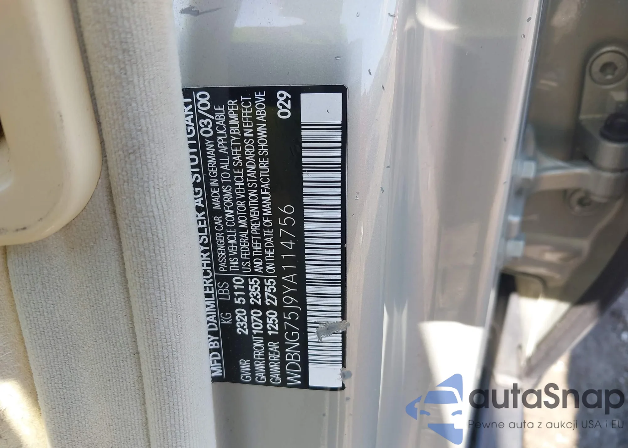 VIN: WDBNG75J9YA114756