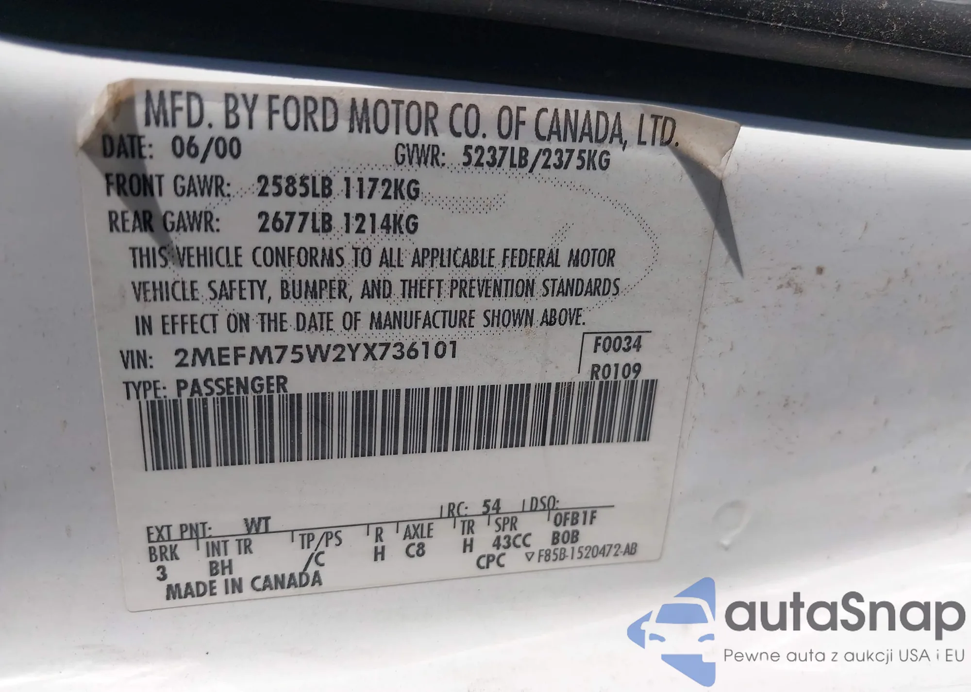 VIN: 2MEFM75W2YX736101