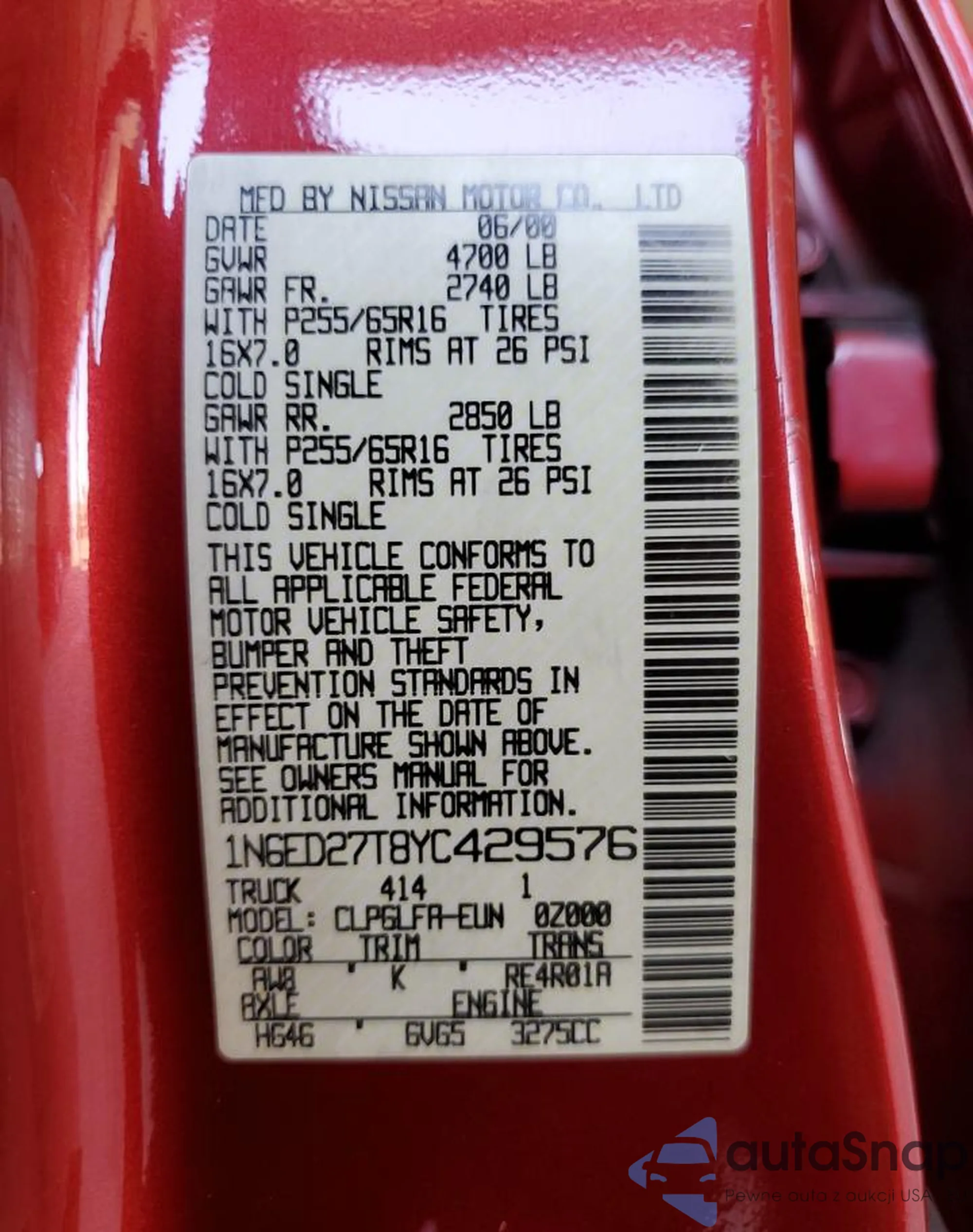 VIN: 1N6ED27T8YC429576