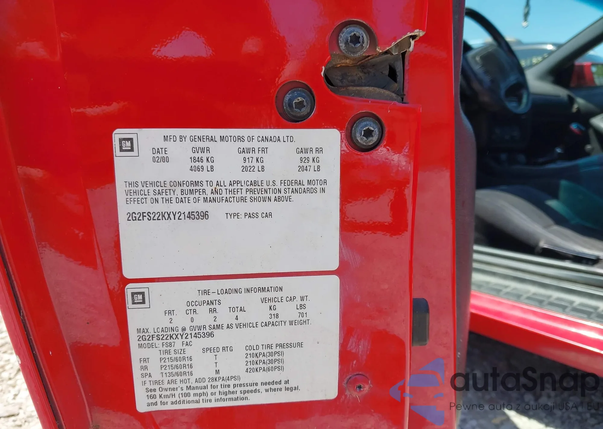 VIN: 2G2FS22KXY2145396