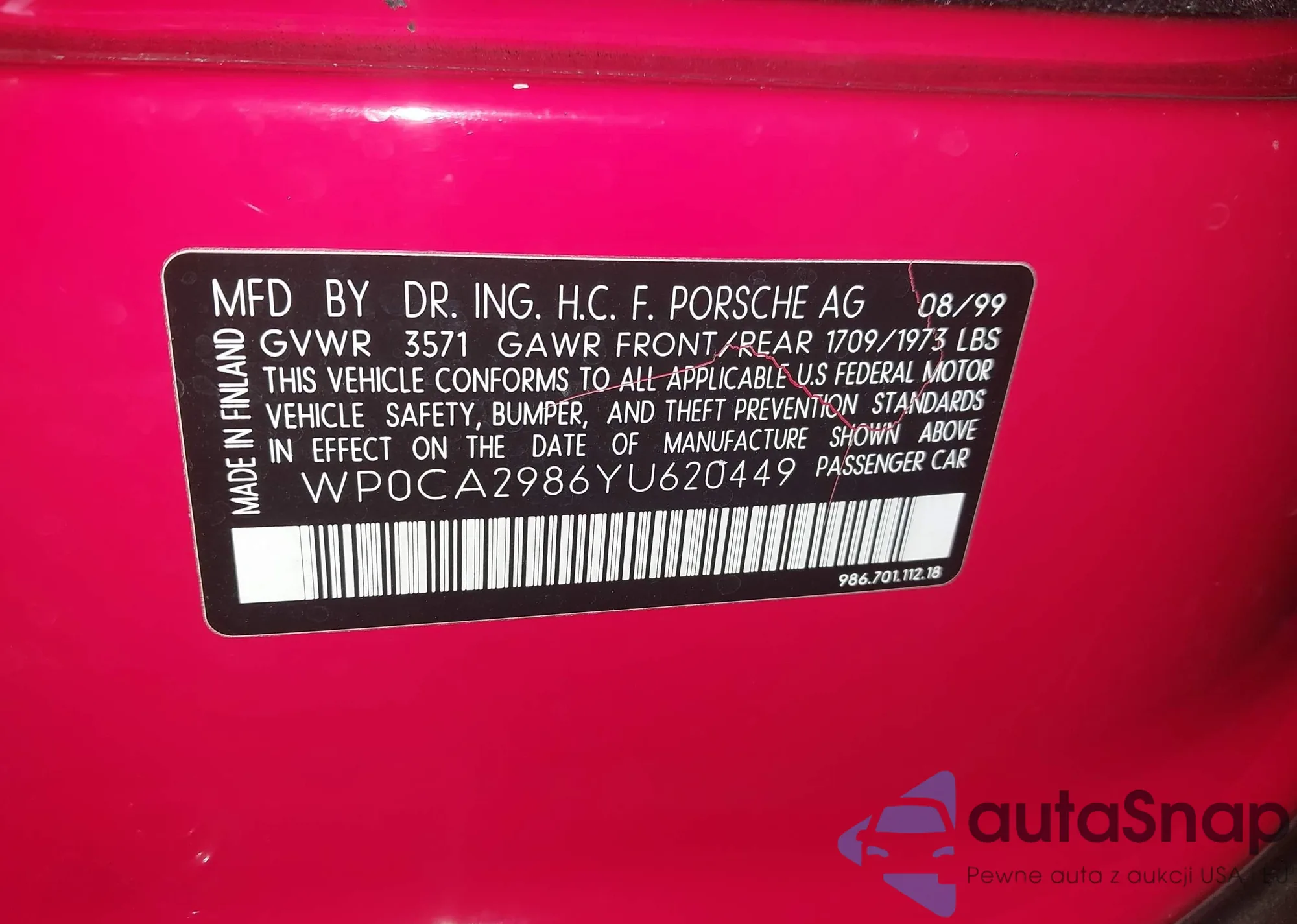 • VIN: WP0CA2986YU620449
