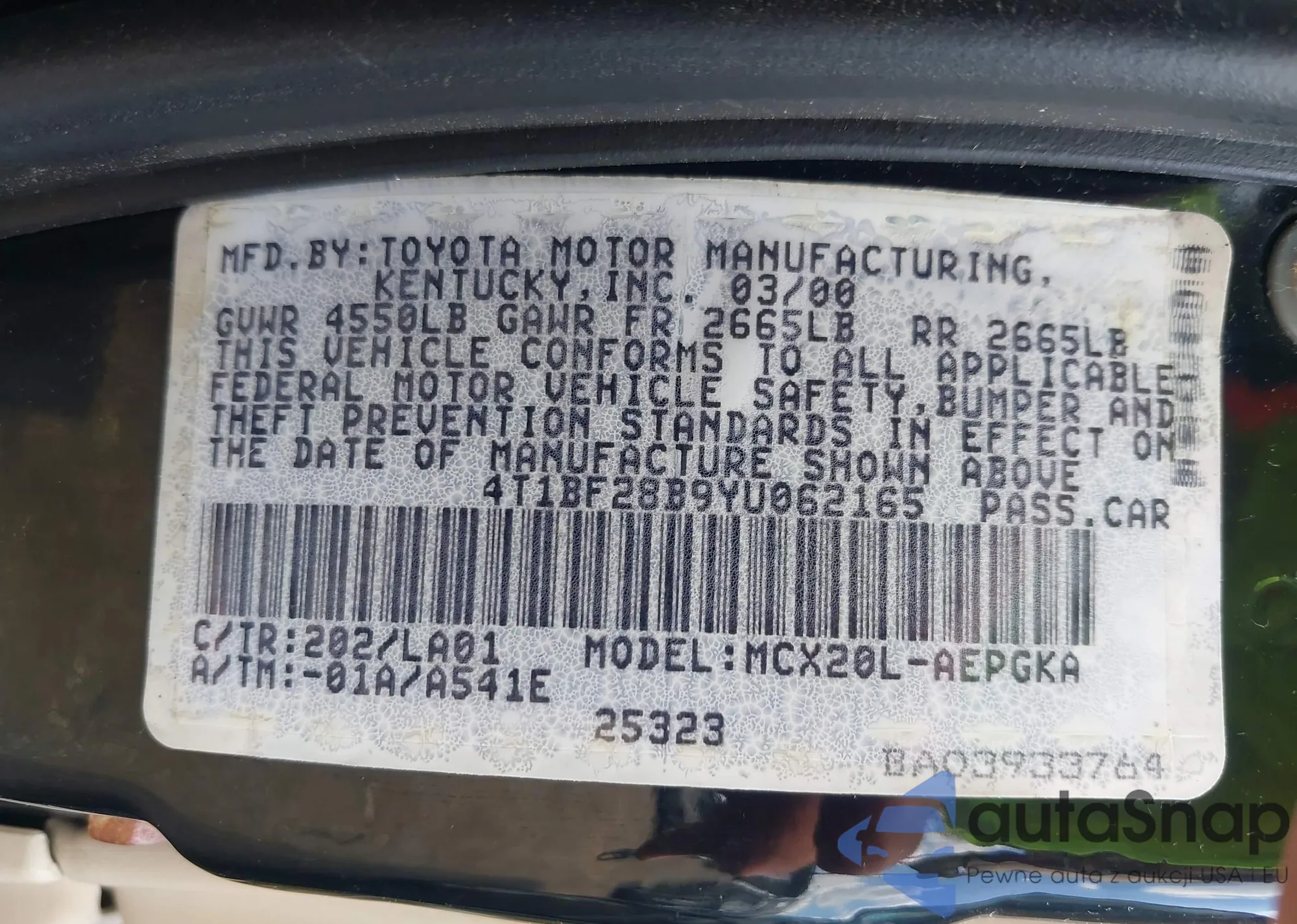 VIN: 4T1BF28B9YU062165
