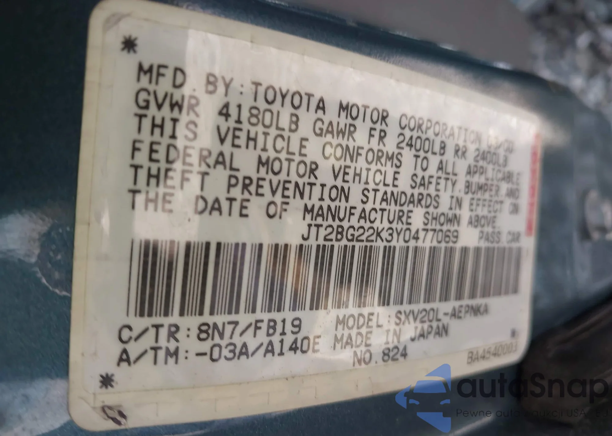 VIN: JT2BG22K3Y0477069