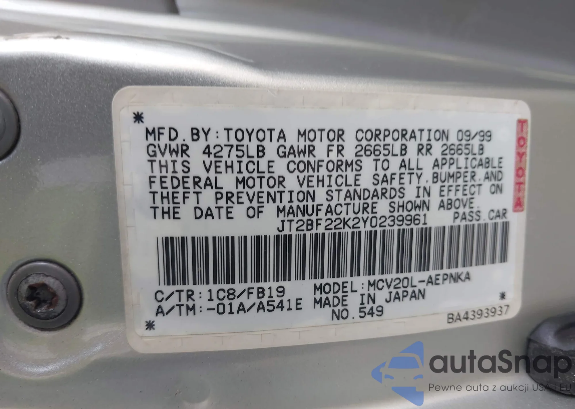 VIN: JT2BF22K2Y0239961