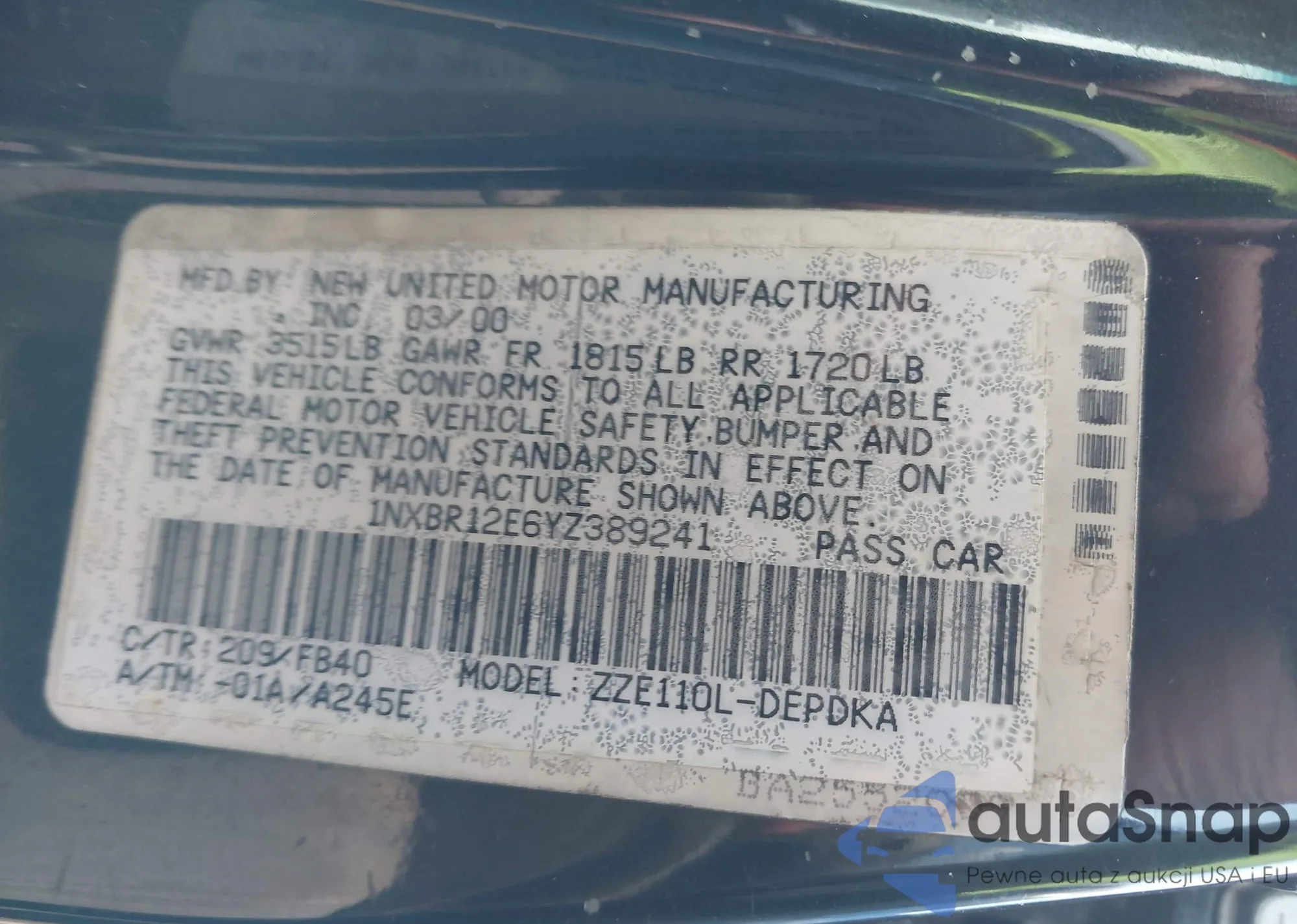VIN: 1NXBR12E6YZ389241