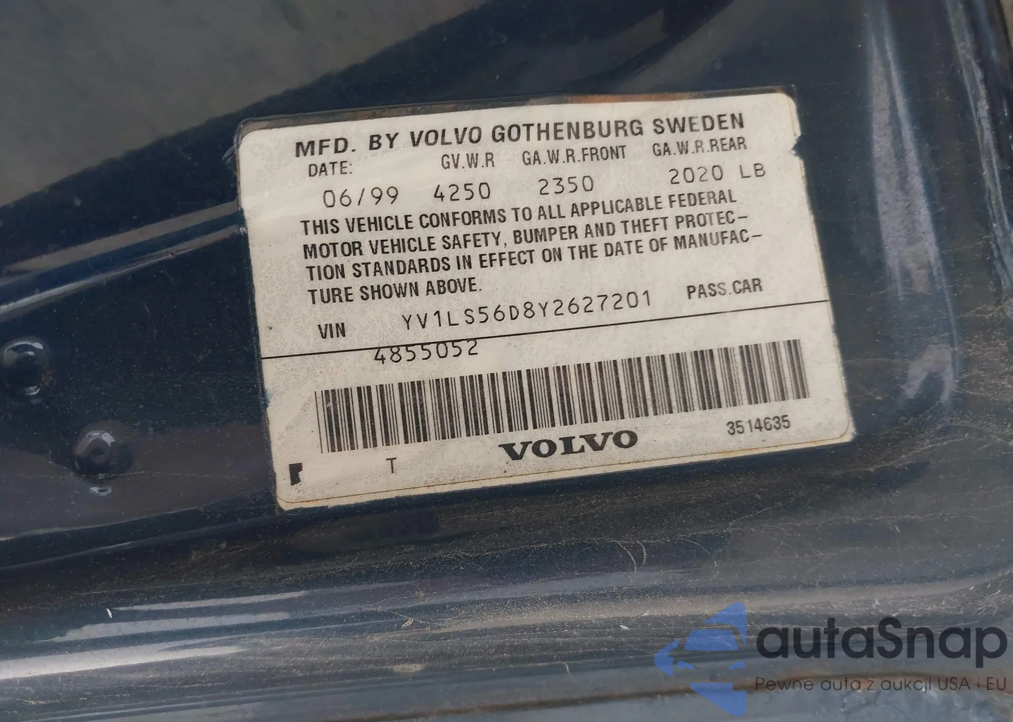 VIN: YV1LS56D8Y2627201