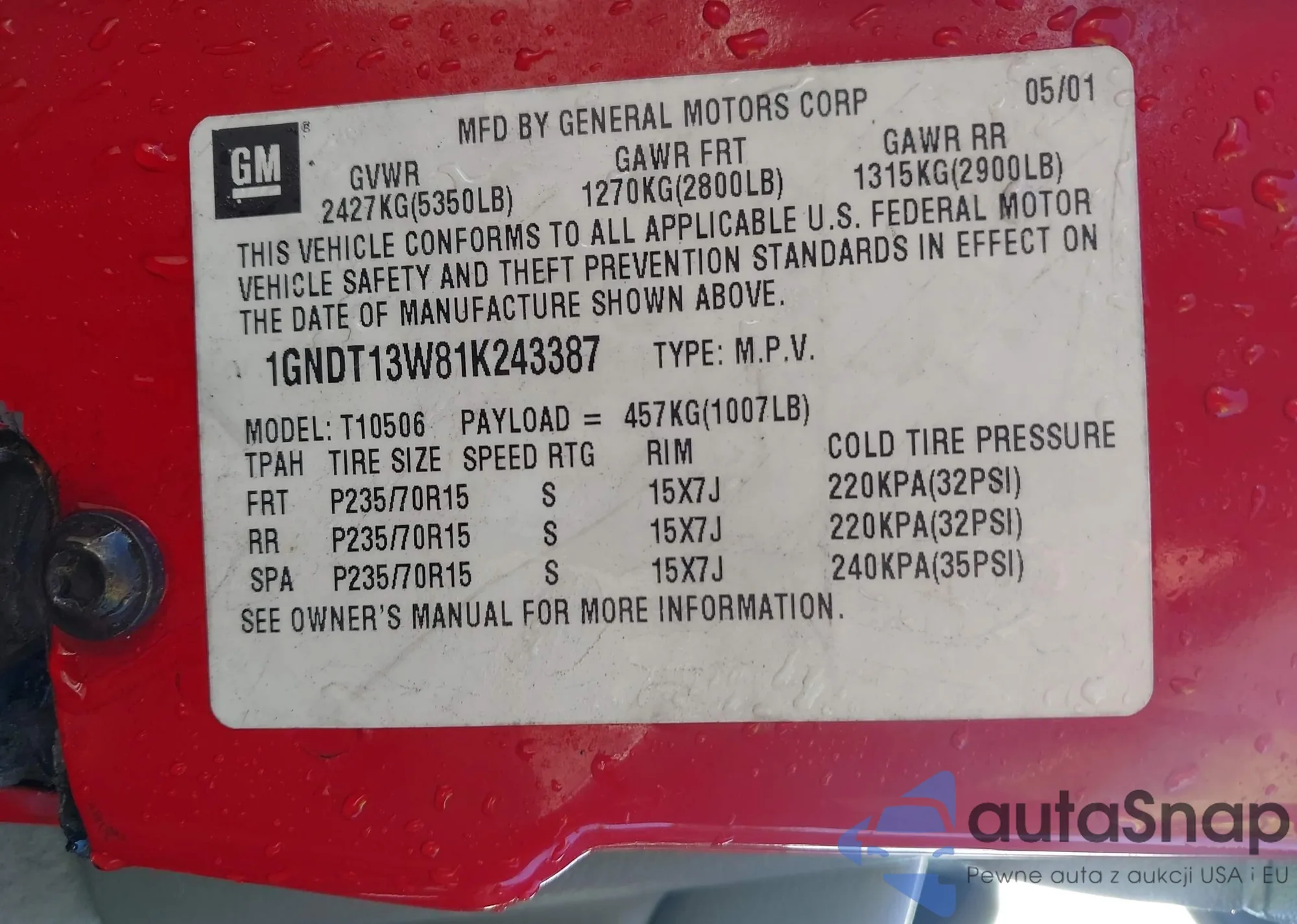 VIN: 1GNDT13W81K243387