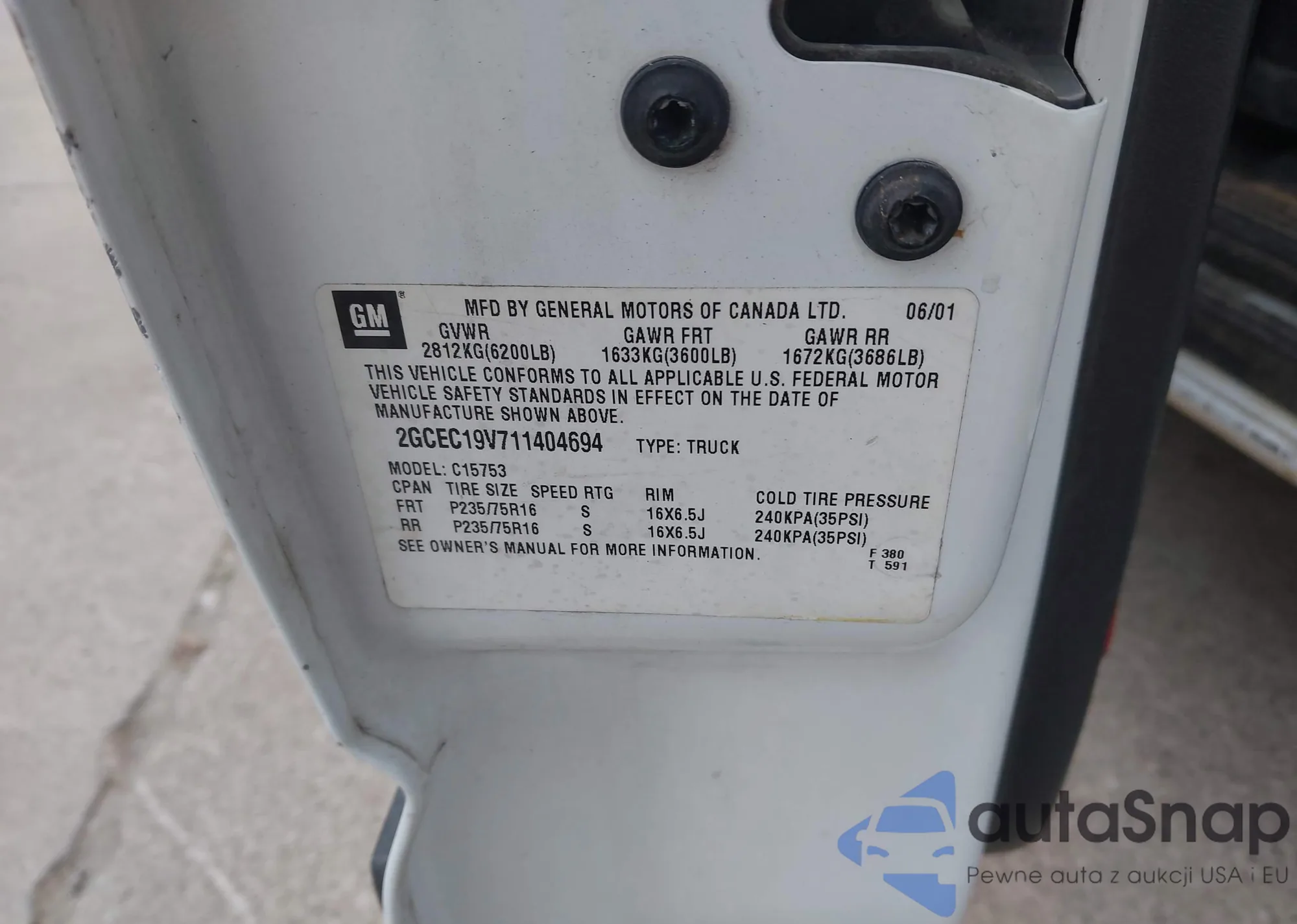 • VIN: 2GCEC19V711404694