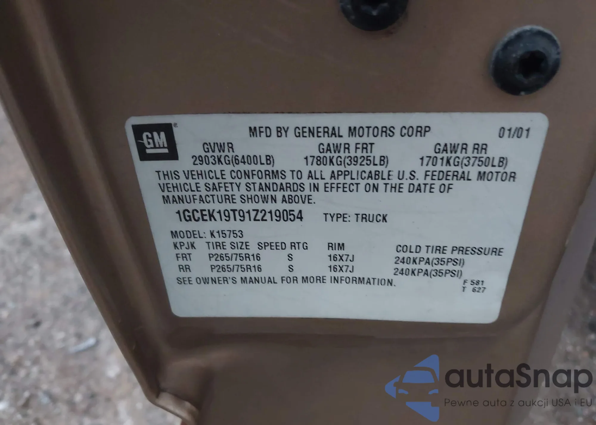 VIN: 1GCEK19T91Z219054