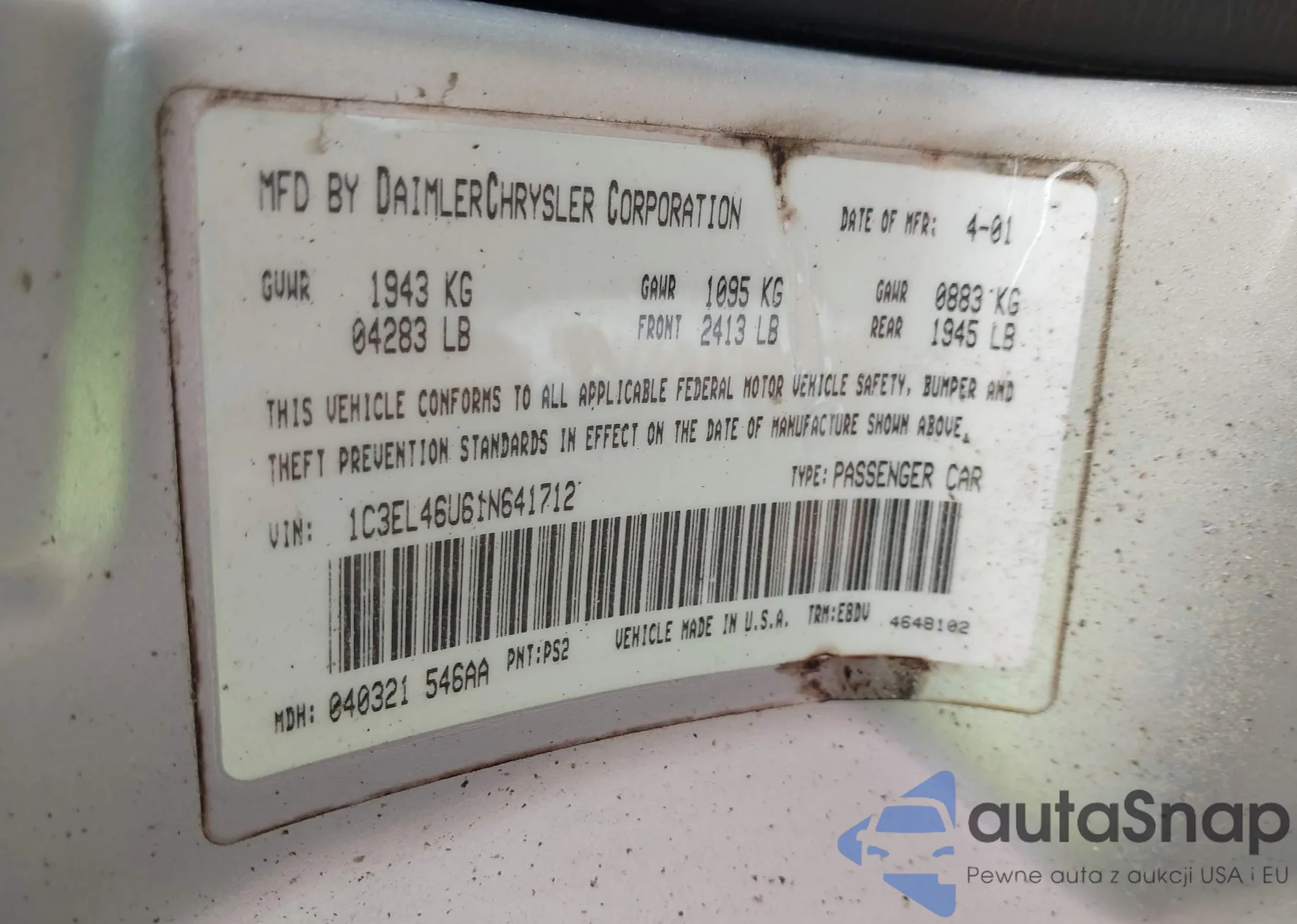 VIN: 1C3EL46U61N641712