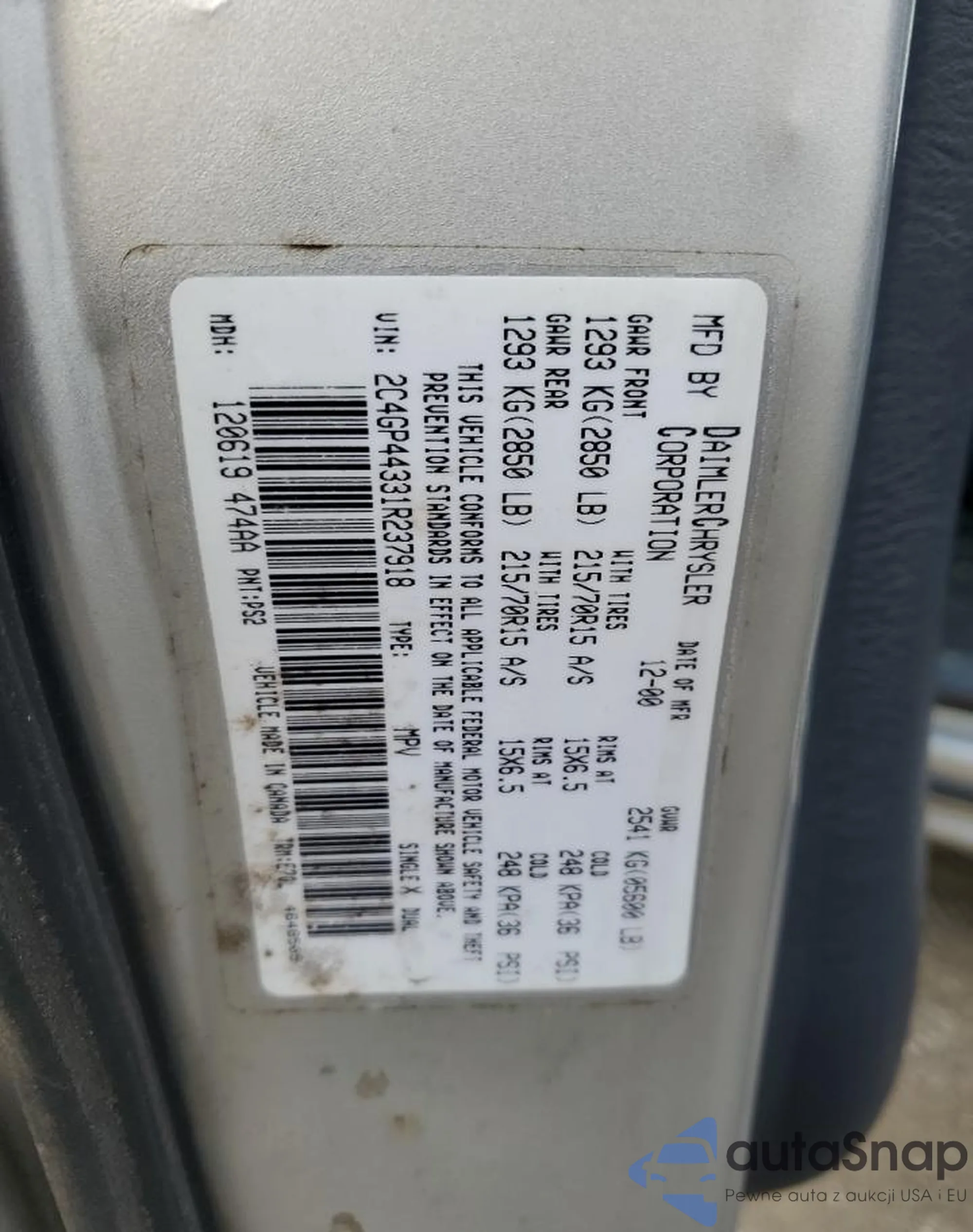 VIN: 2C4GP44331R237918