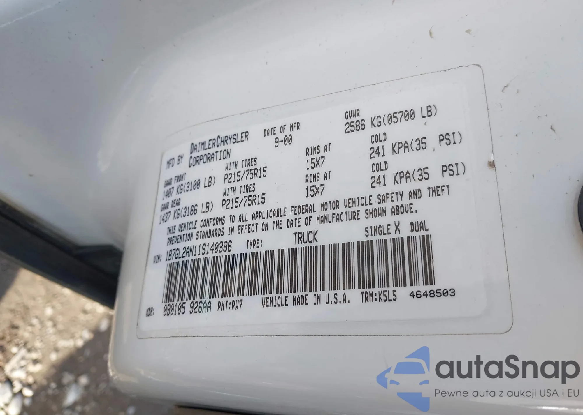 • VIN: 1B7GL2AN11S140396