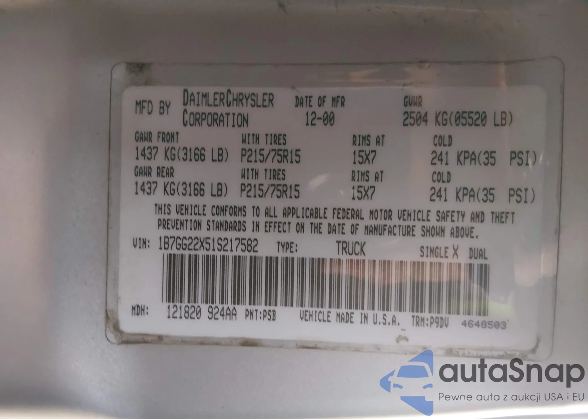 VIN: 1B7GG22X51S217582