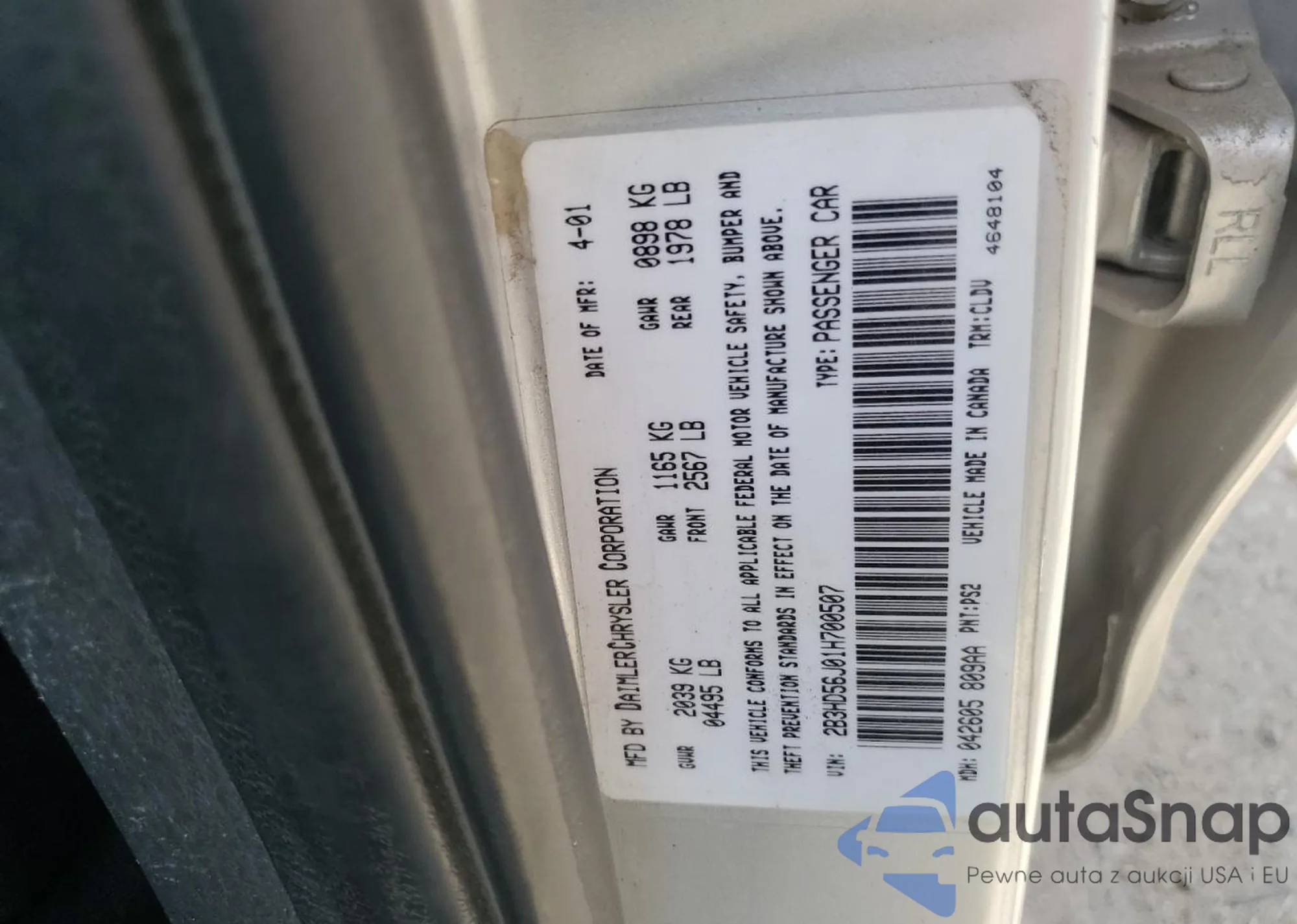 VIN: 2B3HD56J01H700507