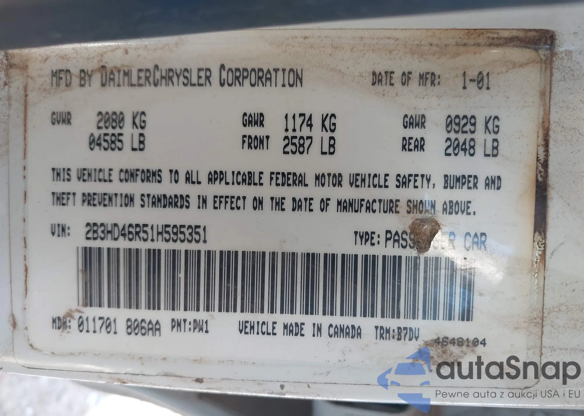 VIN: 2B3HD46R51H595351