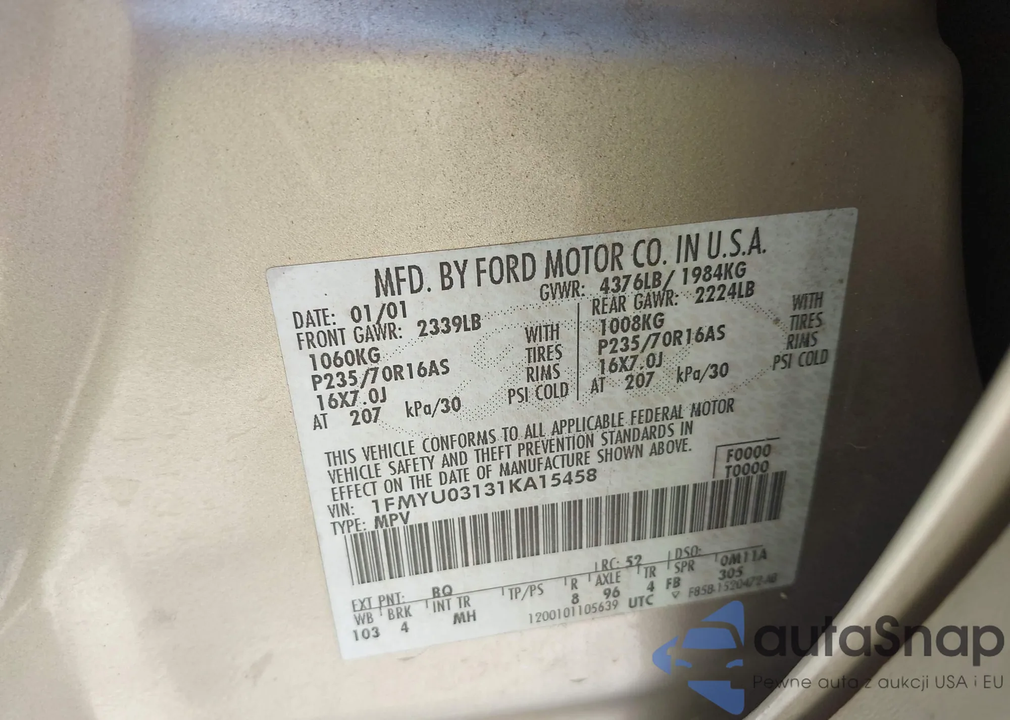 VIN: 1FMYU03131KA15458