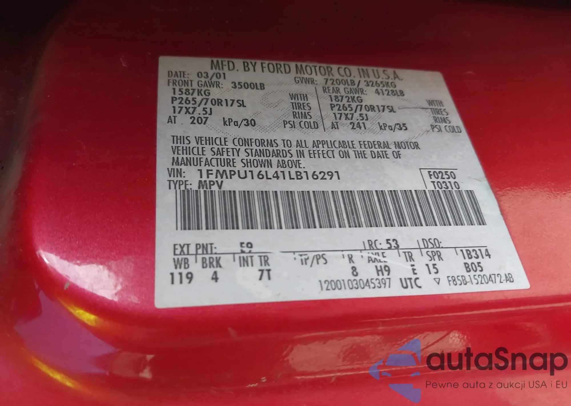 VIN: 1FMPU16L41LB16291