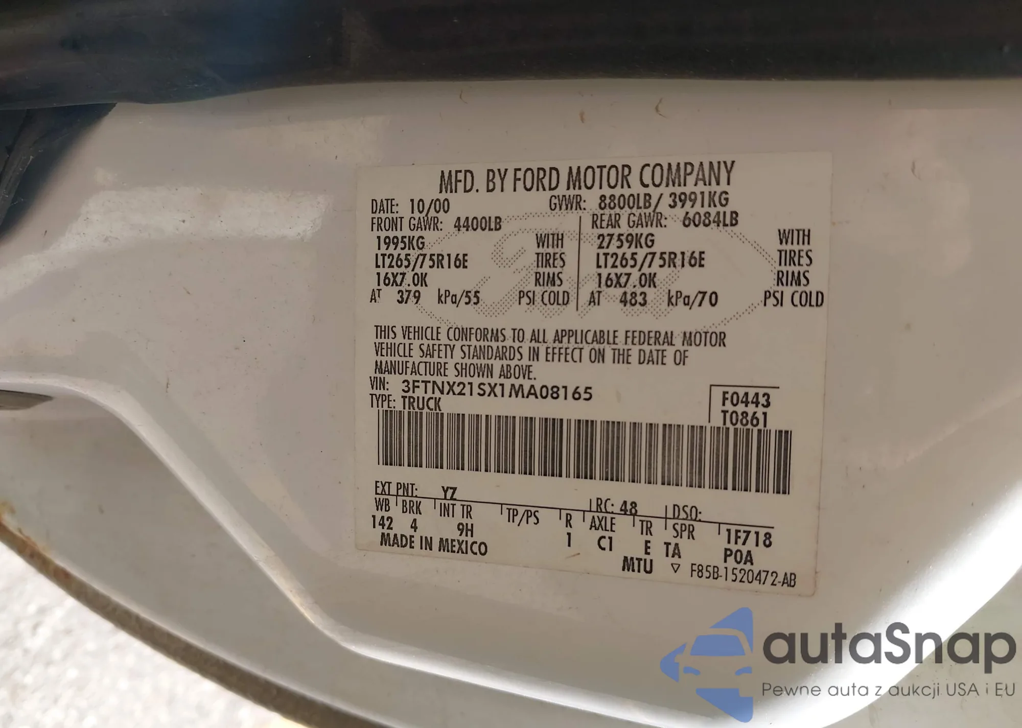 VIN: 3FTNX21SX1MA08165