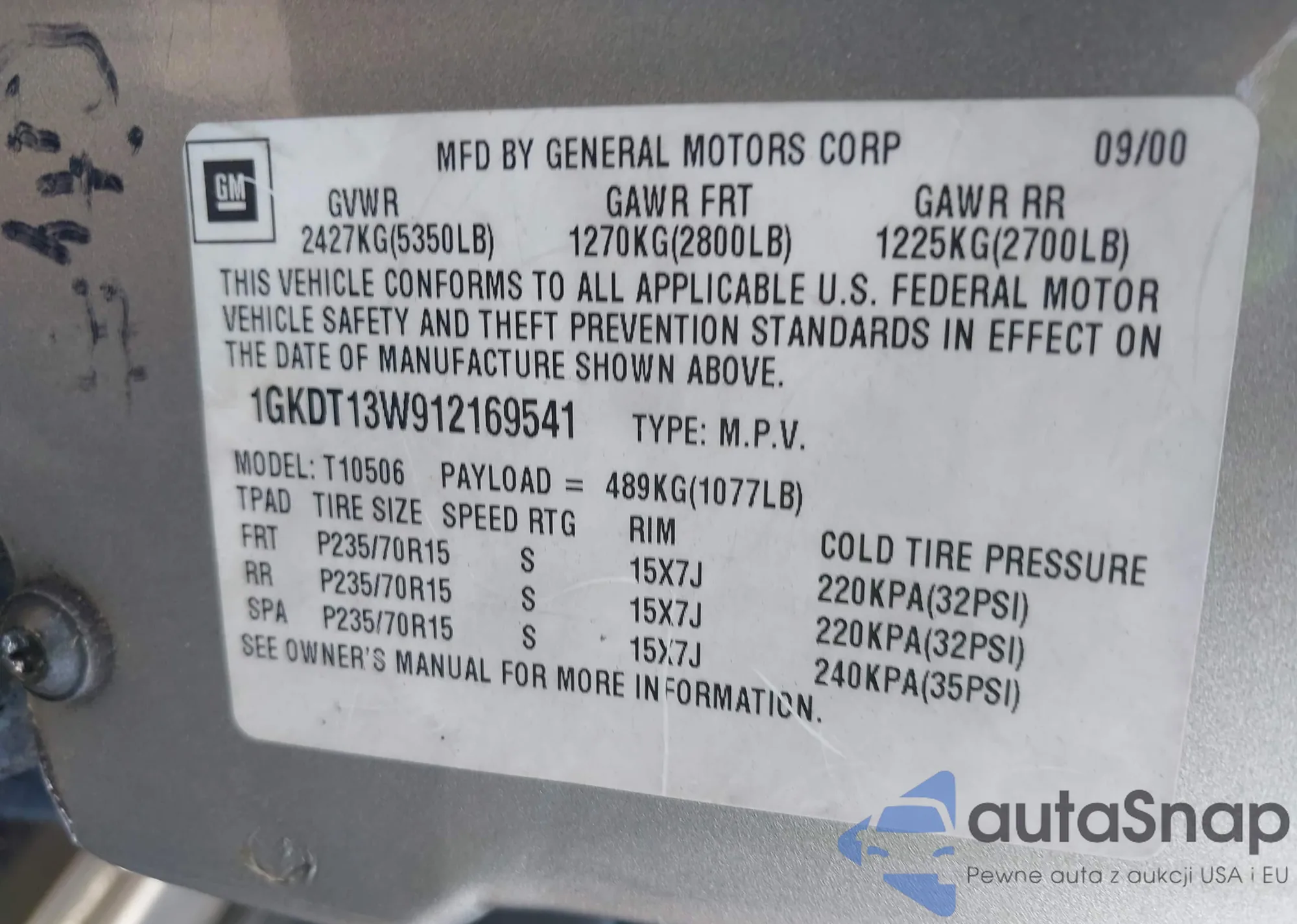 VIN: 1GKDT13W912169541